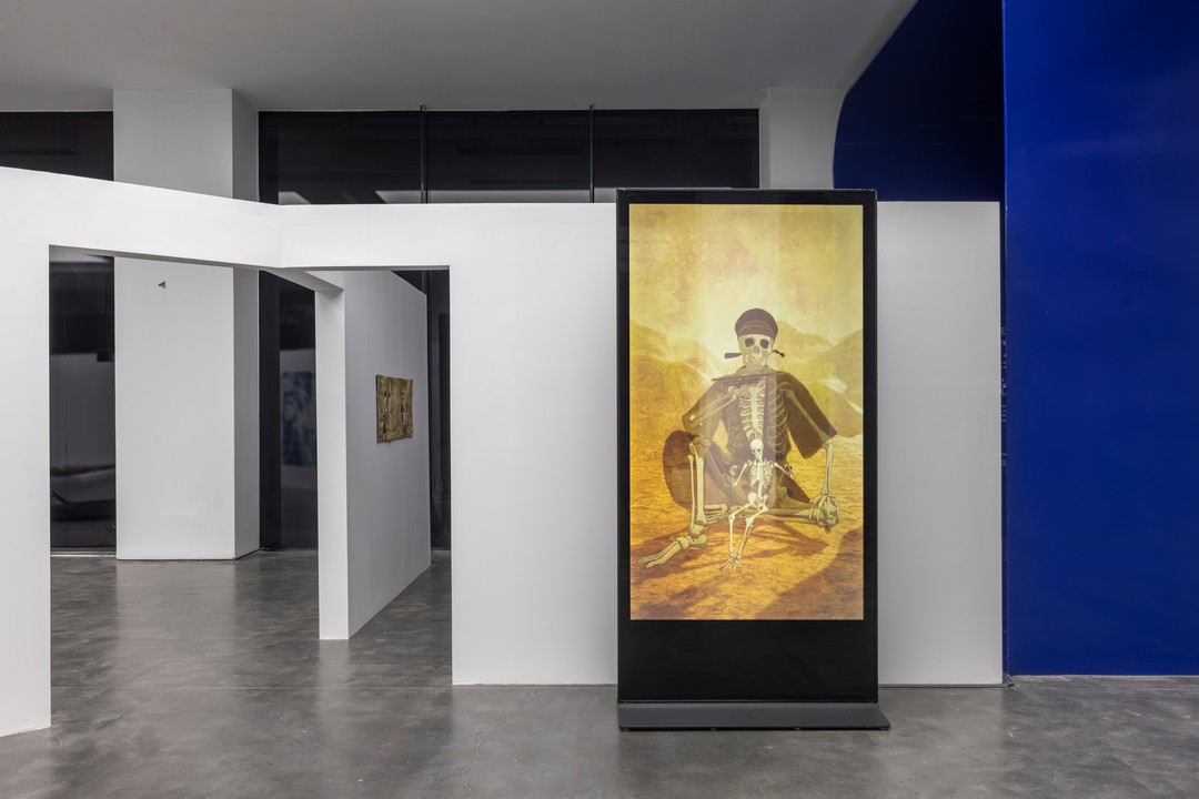 王之纲,《骷髅幻戏图》,2018,互动装置,85寸。“将死亡带回生活”展览现场,MACA,2025。摄影:杨灏