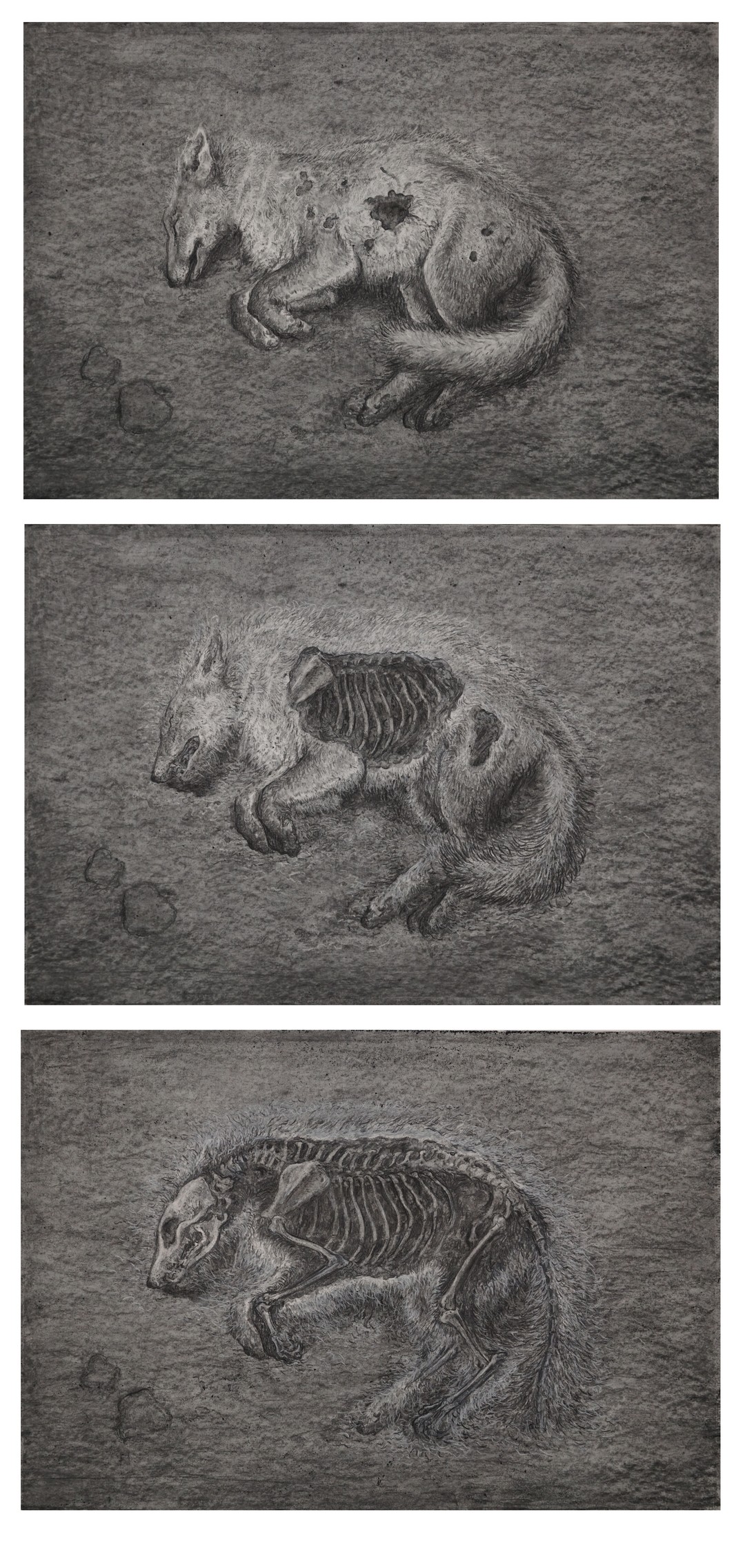 宋敏×景军 《反向关怀》,2024, 59×42厘米×3。“将死亡带回生活”展览现场,MACA,2025。摄影:杨灏 (2)