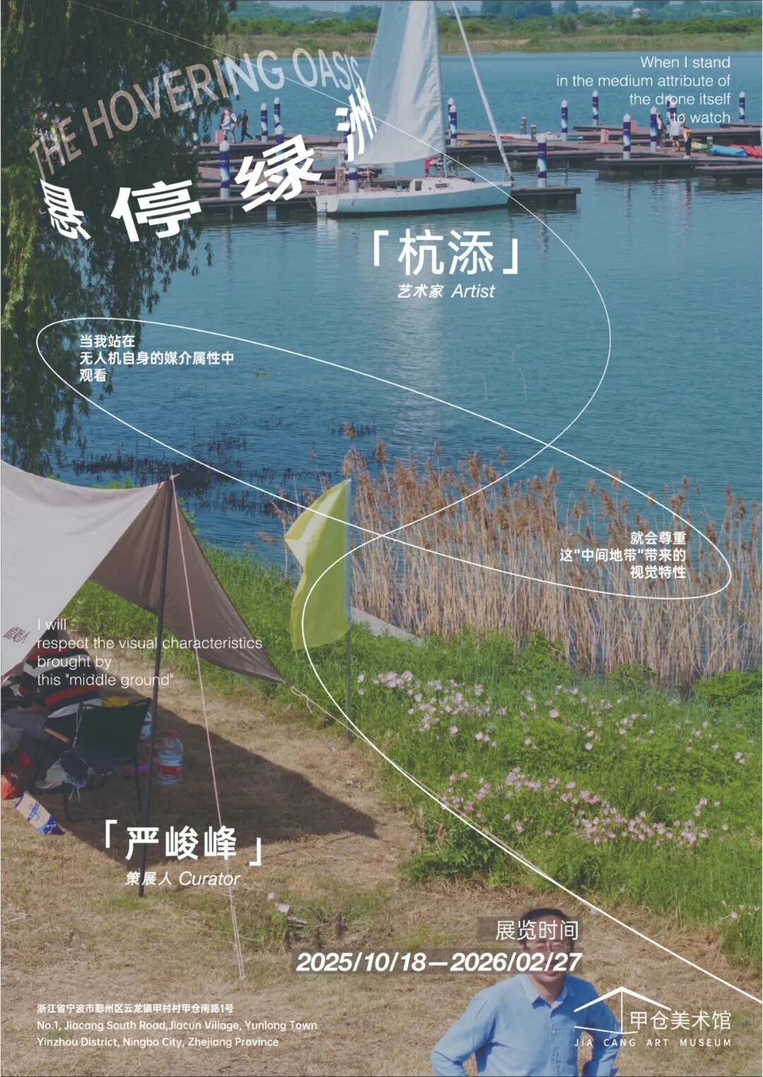 宁波甲仓美术馆荣幸地宣布,将于 2025 年 10 月 18 日至 2026 年 2 月 27 日举办艺术家杭添的个人项“悬停绿洲”。此次展览将向公众呈现杭添自 2022 年以来记录中国露营热的系列无人机摄影作品,拍摄以江浙地区为核心,覆盖全国多城,定格了公共绿地、城市公园、专业营地等多元空间中的露营场景。