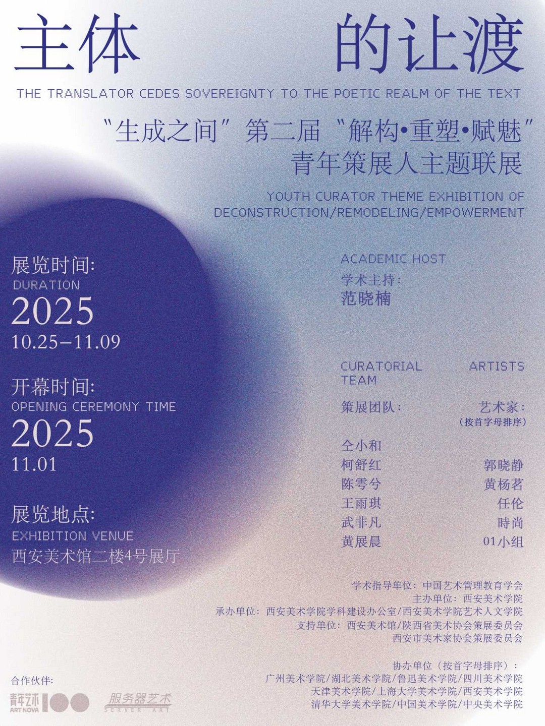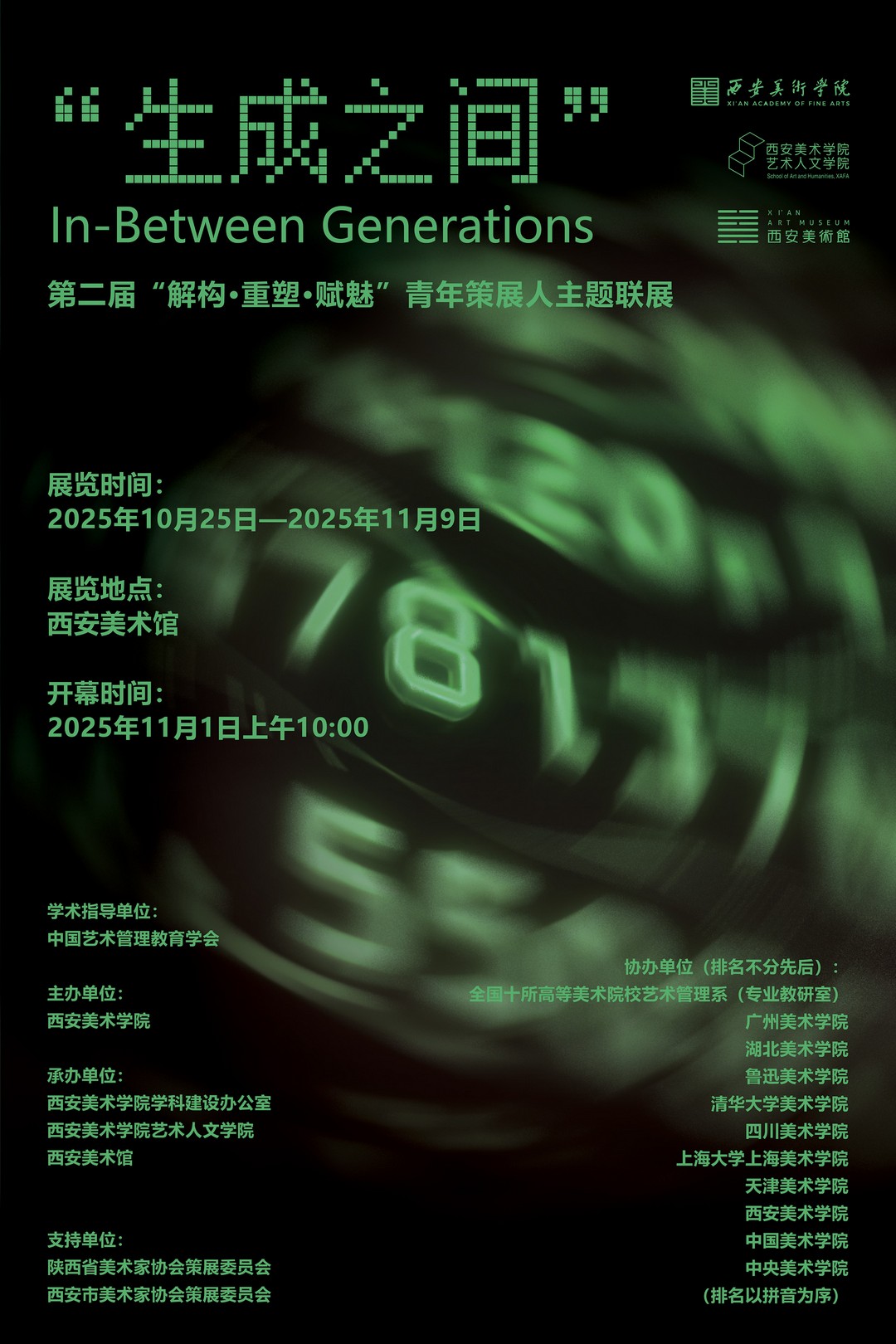 “生成之间”作为第二届“解构·重塑·赋魅”青年策展人主题联展的延续,旨在探索AI介入背景下策展实践与艺术语言之间的未完成状态与生成张力。本次展览由西安美术学院主办,将继续联合全国十所重点高等美术学院艺术管理及相关专业的教师与学生,组成策展团队,围绕“AI × 策展”的实验命题,展开一次跨学科、跨媒介的协作生成。