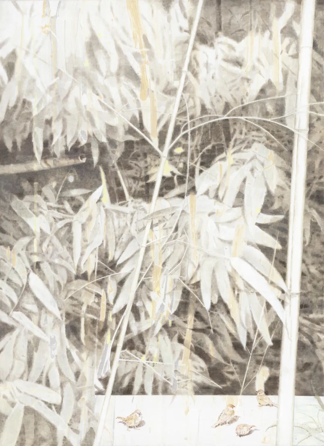 旁滨的绘画以其独特的视觉语言,赋予画面中的每一个物象,无论是动物、窗景、山石,还是建筑,都体现出一种静谧而深邃的灵性。在色彩的流淌与笔触的起伏之间,他实现着对“时间诗学”与“记忆剧场”的持续探索。在近十几年的“北漂”生涯中,他始终执着地穿行于城市与自然的边界,探寻个体与自然之间的深层联结。这一不懈的探寻,逐渐凝结为一种能够跨越时空的视觉表达。