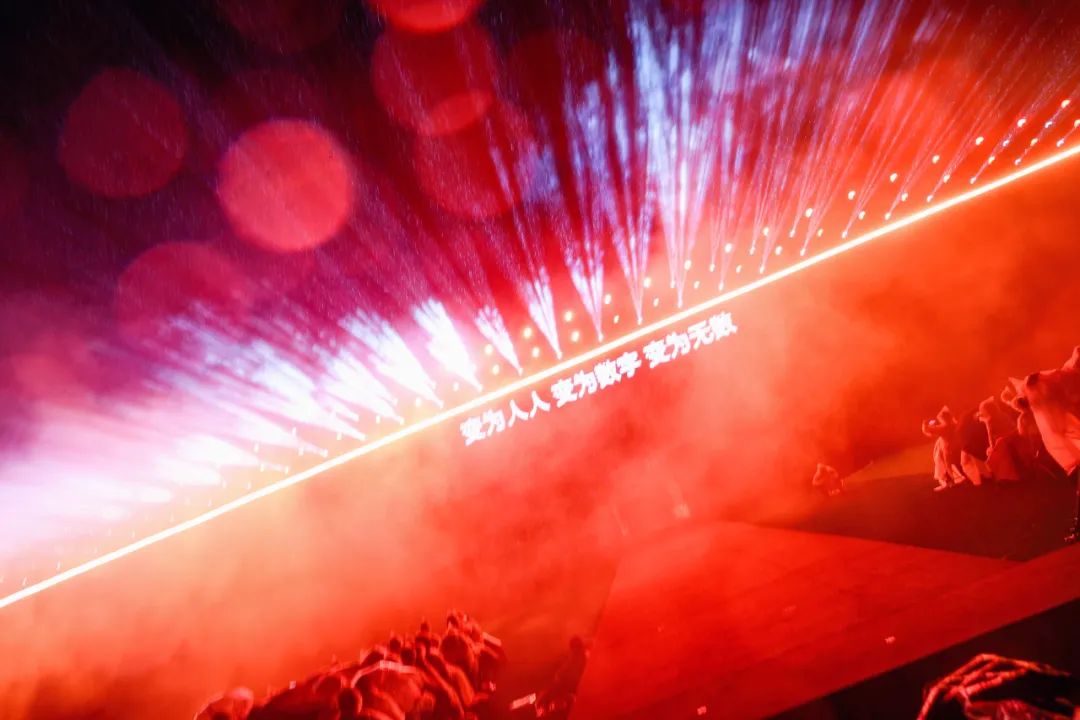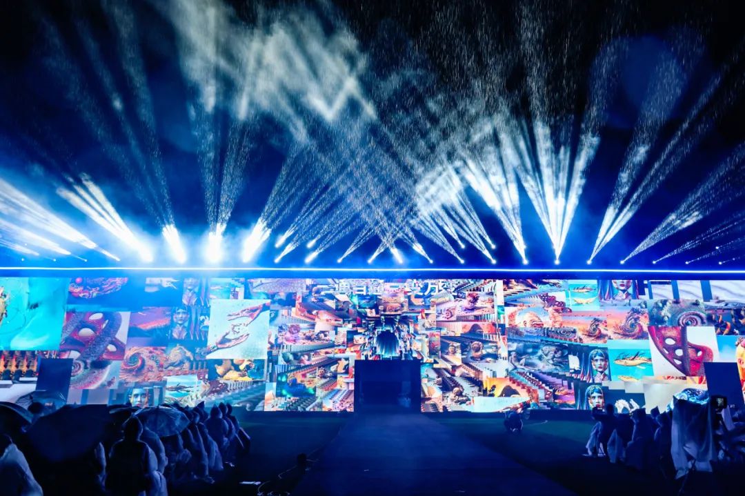 “归元”呈现了《孤山寄语》现场交互系统,将观众从象山校区传送到西湖之畔的孤山老校址,跨时空临湖相望。现场还邀请观众们扫码进入《GENE:生成之我》图像人格生成系统,输入属于每一个人的毕业寄语,并通过传送门一起来到“中央舞台”,幻化为一个个不断变形、通达、共鸣的生命引擎,开启一场属于大家的集体走秀。