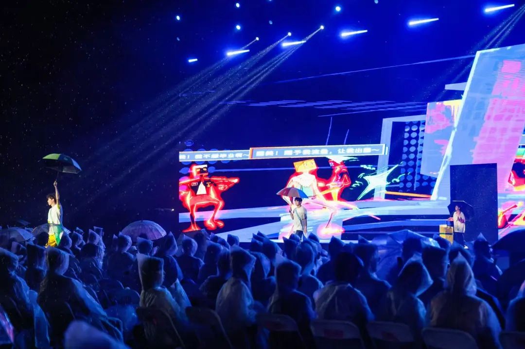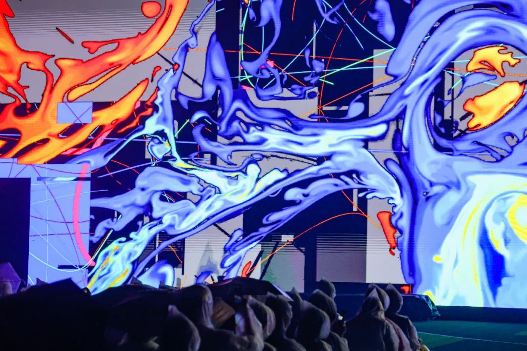 伴随着灯光变换,“心游”主题展演徐徐展开。《山水·葱茏南国》《步行的孢子 Walking Spores》《不稳定的扩散 Unstable Diffusion3’》和本年度毕业季主题曲《β.!.À.N》带领大家在万千变化中徜徉在生命力盎然的大脑花园。