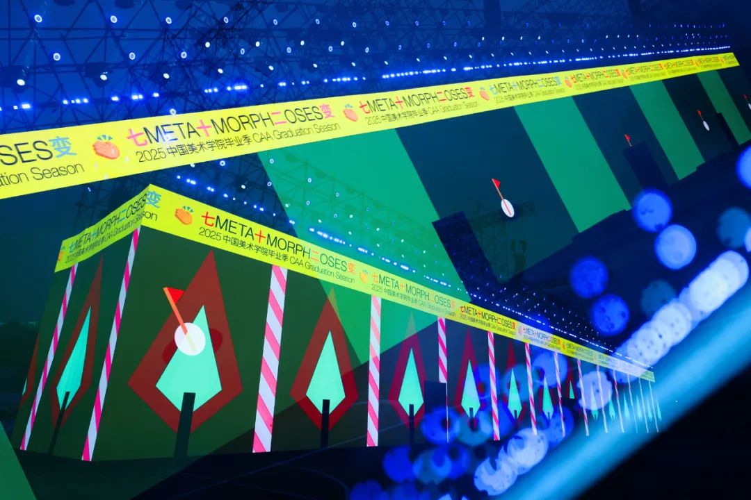 2025中国美术学院毕业季的开幕式以四面环绕式舞台呈现,从造型设计上回应“七十二变”的主题,一画开天,变化万千,呈现出一个团聚高能的现场,后续几日则构造出一个充满创造力、温度与回忆的总体剧场。