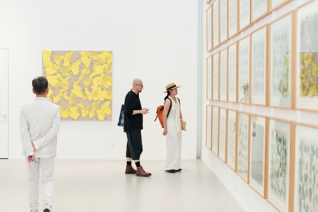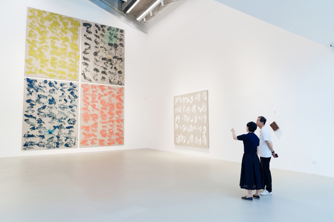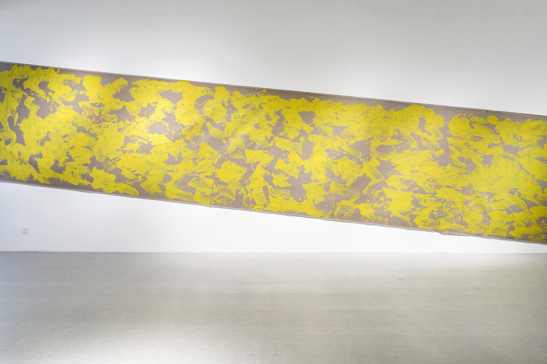 在“啊打”系列中,绘画挣脱了视觉直觉的束缚,转化为物质的痕迹与时间的沉积。艺术家以大尺幅、强烈色域与克制的手工性,挑战着观众对绘画传统的感知模式,重构观看经验。“啊打”系列,是马可鲁对绘画本质的一次激进叩问。他毅然剥离了传统绘画中看重的叙事、意义表达和技巧展现,转而确立“无意义”、“无技巧”、“无东西方分野”的全新准则。他试图抛开所有既定标签,旨在回到绘画最原初的本源去寻找答案。创作时,马可鲁刻意弱化“手”的干预,追求一种松弛、轻盈的状态,让绘画如呼吸般自然发生。这种“四两拨千斤”的方式,摒弃了刻意的雕琢与用力的痕迹。画面细节并非精心设计,而是由绘画动作本身自然带出,在极致的简练中保留着深邃的绘画性。
