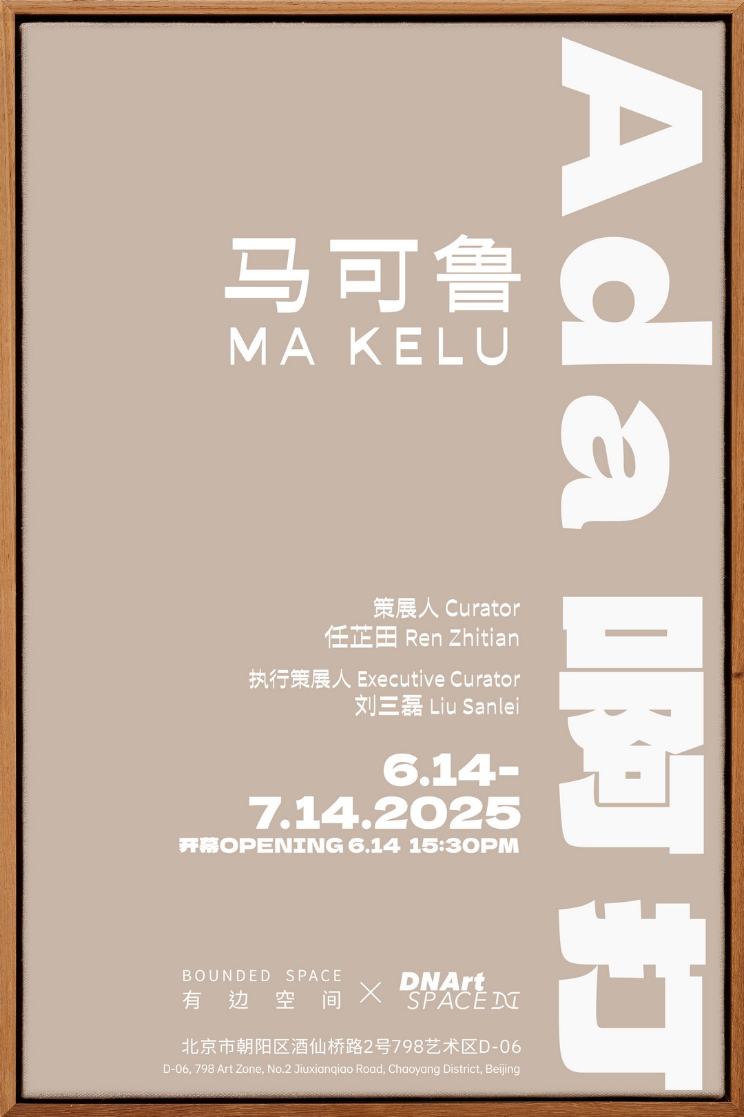 2025年6月14日,艺术家马可鲁个展「啊打」正式开幕。本次展览由有边空间BOUNDED SPACE与DNArt联合出品,任芷田担任策展人,刘三磊担任执行策展人。作为「啊打」系列作品展出规模最大、最完整的一段作品,这些作品既各自成章又紧密关联,延续了马可鲁一贯的精神探索,并在形式上呈现出更为激进的姿态,同时,展览亦特别呈现「啊打」系列的前奏与延展之作。