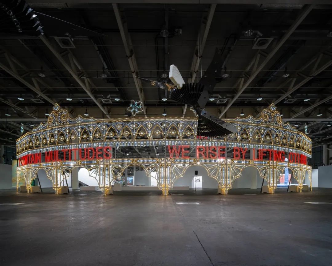 本届博览会也呈现出一幅比以往更加错乱、碎片化,但同时更具全球化雄心的图景。同时,相较于往届,今年的展会从宏大的宣言式主题,转向了对身份、社群、历史以及个体关系的深度挖掘,揭示了一个在消费降级和商业保守化背景下,正经历深刻重构的艺术世界。