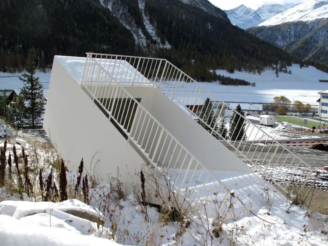马丁·基彭博格(Martin Kippenburger)《地铁网系列》(Metro-Net - Transportable Subway Entrance), 1997. Madulain, Switzerland, installed 2001. Photo: Kamahele, Wikimedia Commons.