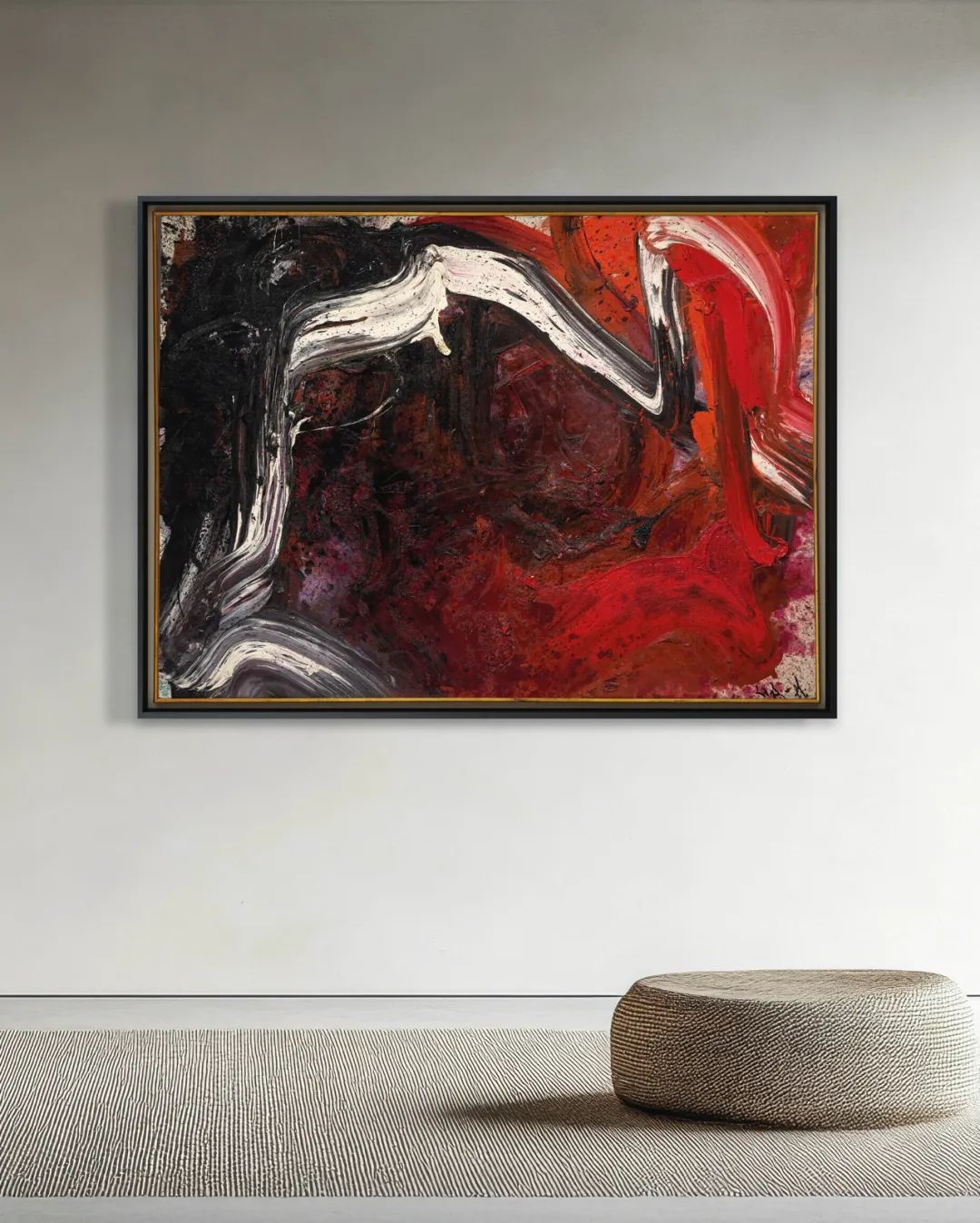 本作曾由画廊主鲁道夫·施泰德(Rodolphe Stadler)家族珍藏,传承有序。画面完美诠释了白发一雄标志性的鲜红色彩与厚重颜料堆叠技法,淋漓尽致地展现了具体派“以物质承载自由精神”的核心美学,绝对是资深藏家不容错过的博物馆级珍品。