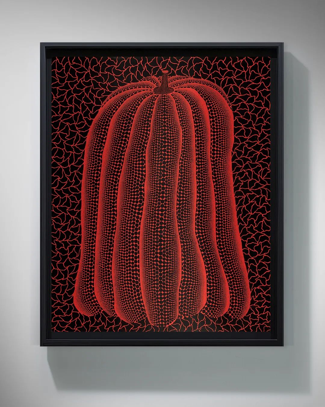 草间弥生的珍罕作品《南瓜(C)》创作于1991年,将炙热夺目的红色配以波点和无限之网等标志性元素,塑造了纵深和光影的细微变化,可见艺术家对于色彩与空间的极致把控。