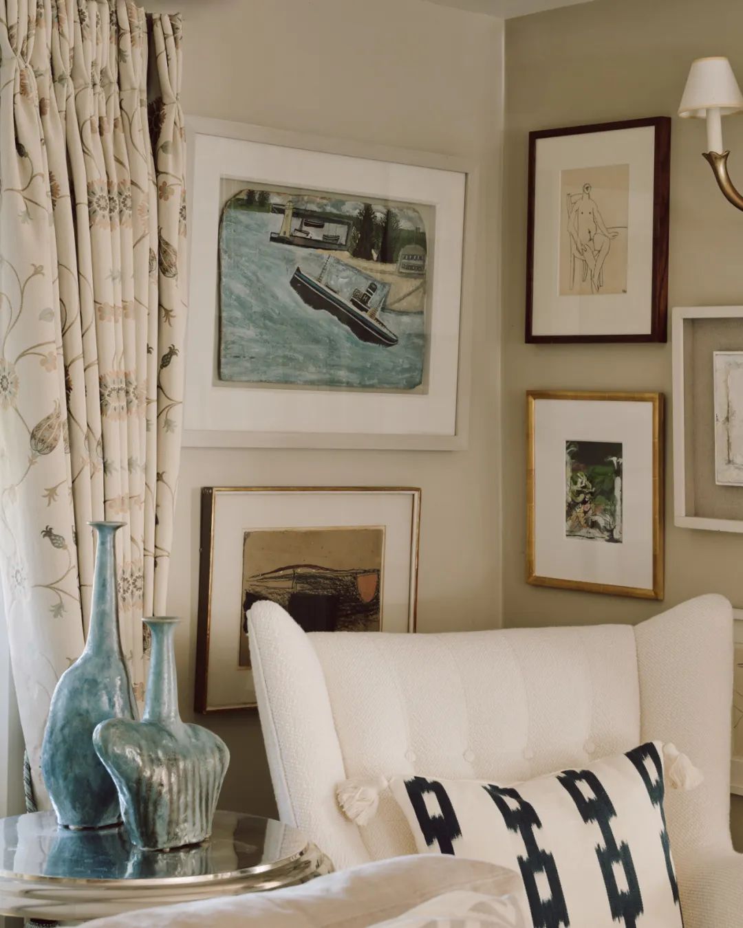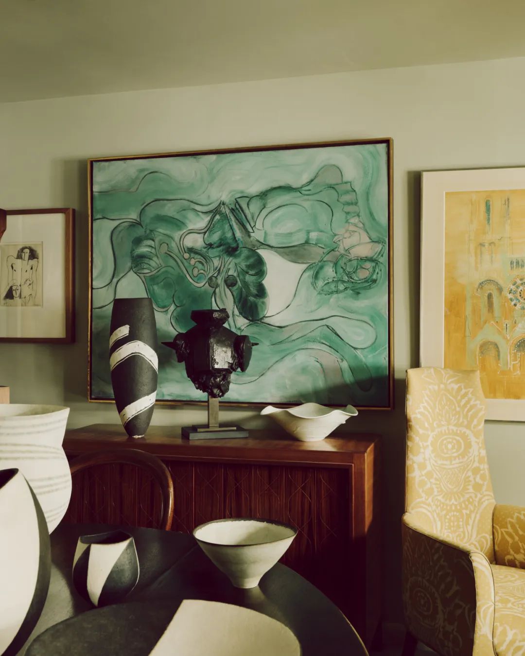 我们经常会变换作品的摆设位置,试著从不同的视角重新欣赏。否则,当艺术品一直待在家中,视觉上可能就「看不见」了,容易变得理所当然。将艺术品以近乎随意的方式,摆放在舒适的家庭环境中,让人能在日常生活中自然欣赏。我们非常钦佩现代主义在老式农舍中展现出的和谐感,它似乎比白墙画廊更能衬托作品本身。