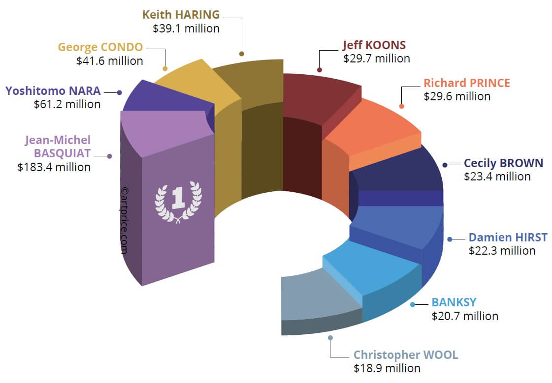 当代艺术前十大成交金额艺术家,图取自 Artprice。