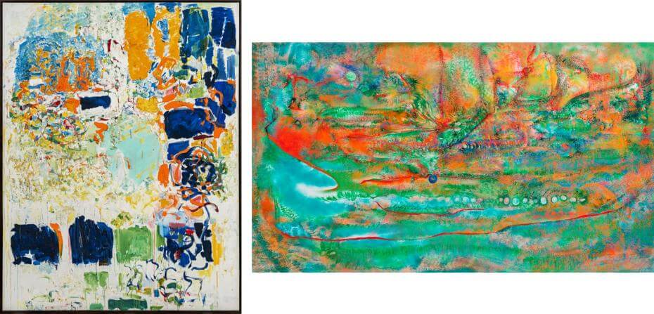 琼·米歇尔Joan Mitchell)作品《Noon》,图取自苏富比 ;露西•布尔(Lucy Bull)作品《18:50》,图取自佳士得 。