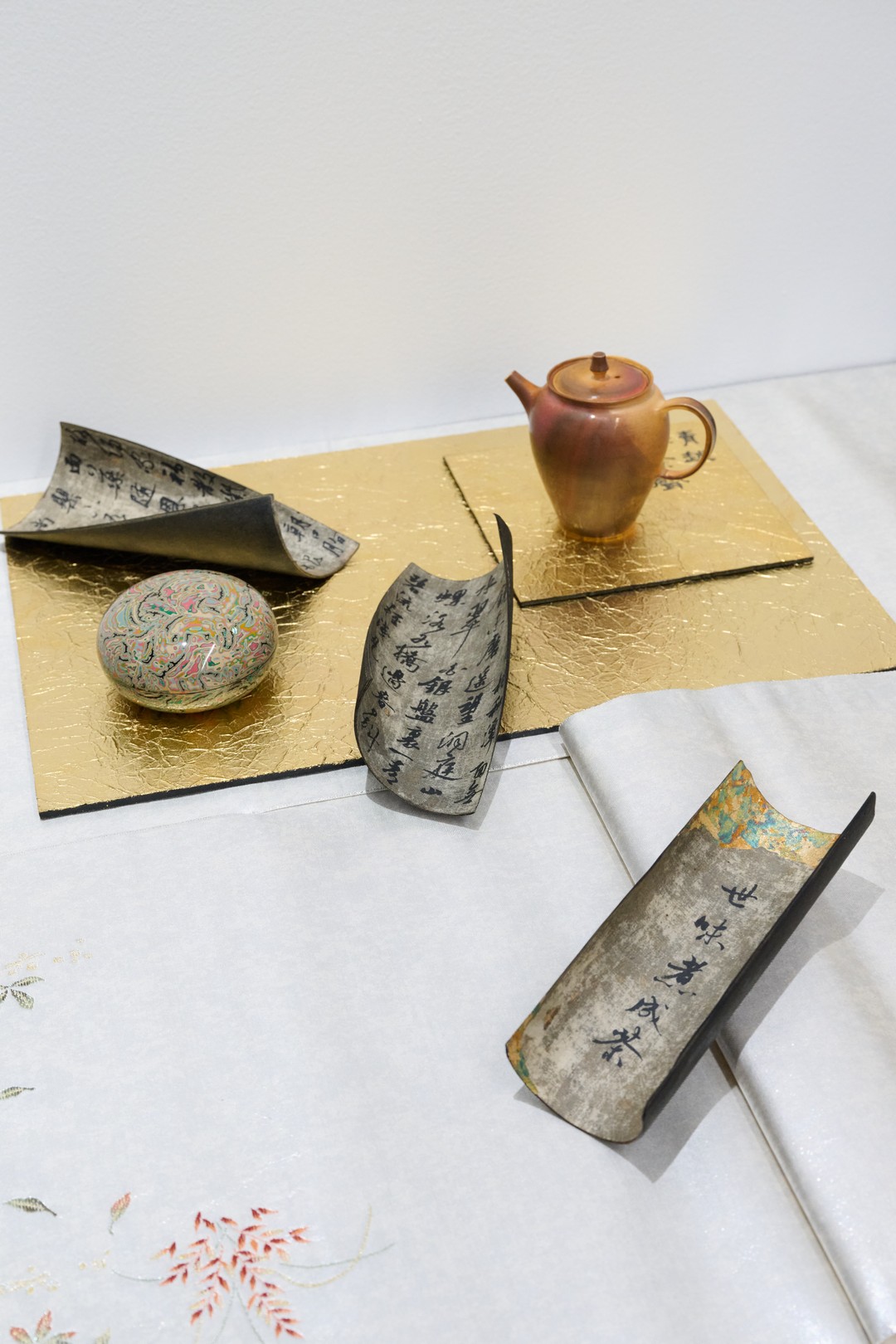 此次展览的第一件作品缘起于当代艺术家何娴倩在工作室创作时的瞬间灵感,以诞生于北宋末年的“锦灰堆”这一独特的艺术形式重构当代水墨作品,在墨韵中呈现折叠的书画时空。