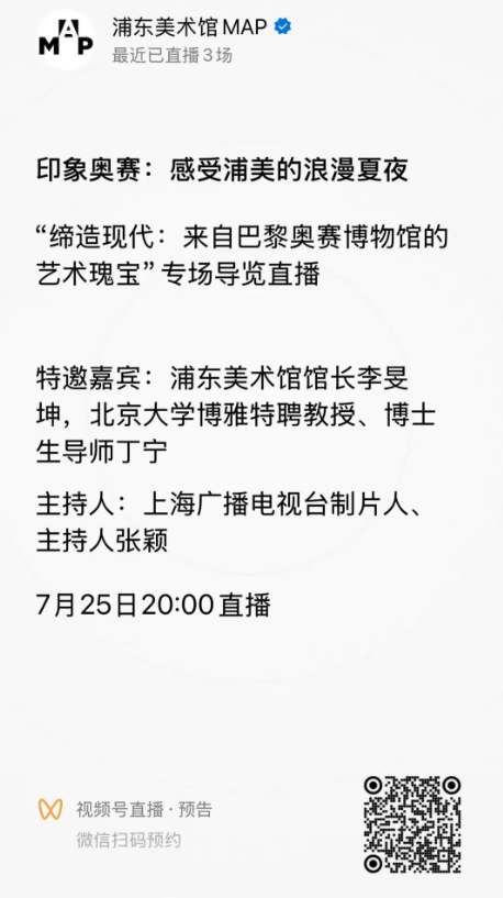 2025年7月25日晚20:00“浦东美术馆MAP”视频号、“真实传媒”视频号等平台重磅上线!