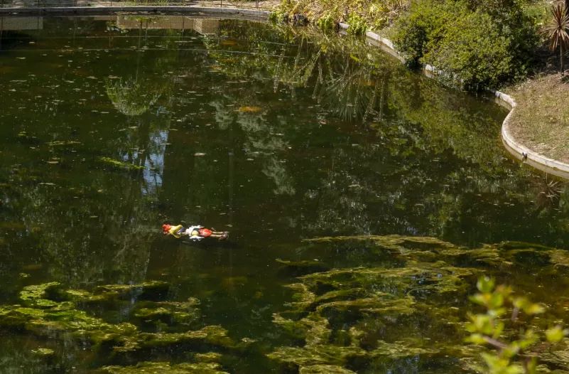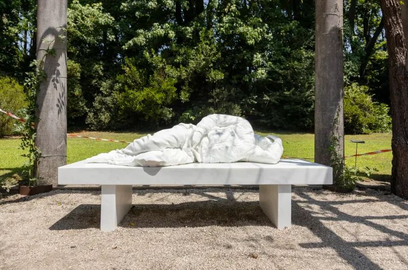 在意大利的文学与大众想象中,匹诺曹是最著名的形象之一。在《爸爸,爸爸》中,艺术家通过俯卧在塞拉瓦莱斯湖的匹诺曹,来寻找缺失的父爱。
