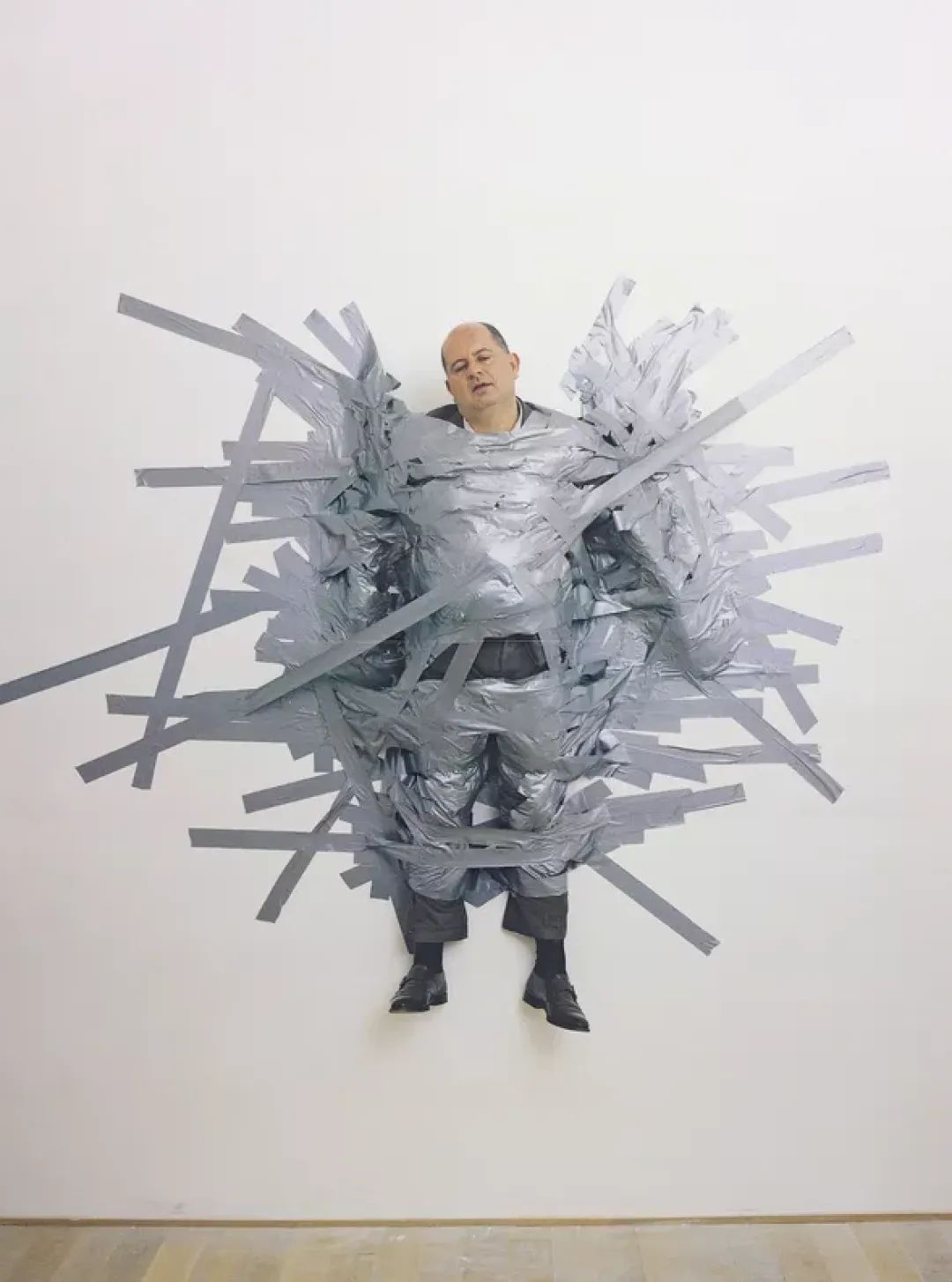 在美术馆的一楼,《喜剧演员》是大家都在谈论的作品之一。而在1999年,卡特兰用同样的胶带将他当时的画廊老板Massimo De Carlo贴在墙上,并命名为《完美的一天》。20年后卡特兰明白了,想要探讨艺术的本质,只要一根香蕉就足够了。
