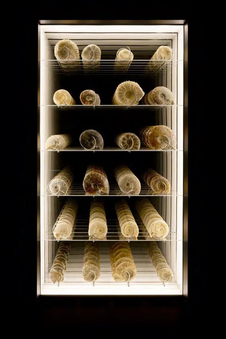 2025,无限镜、灯光、化石自动售货机. 199.4 × 90 × 69.9 cm.