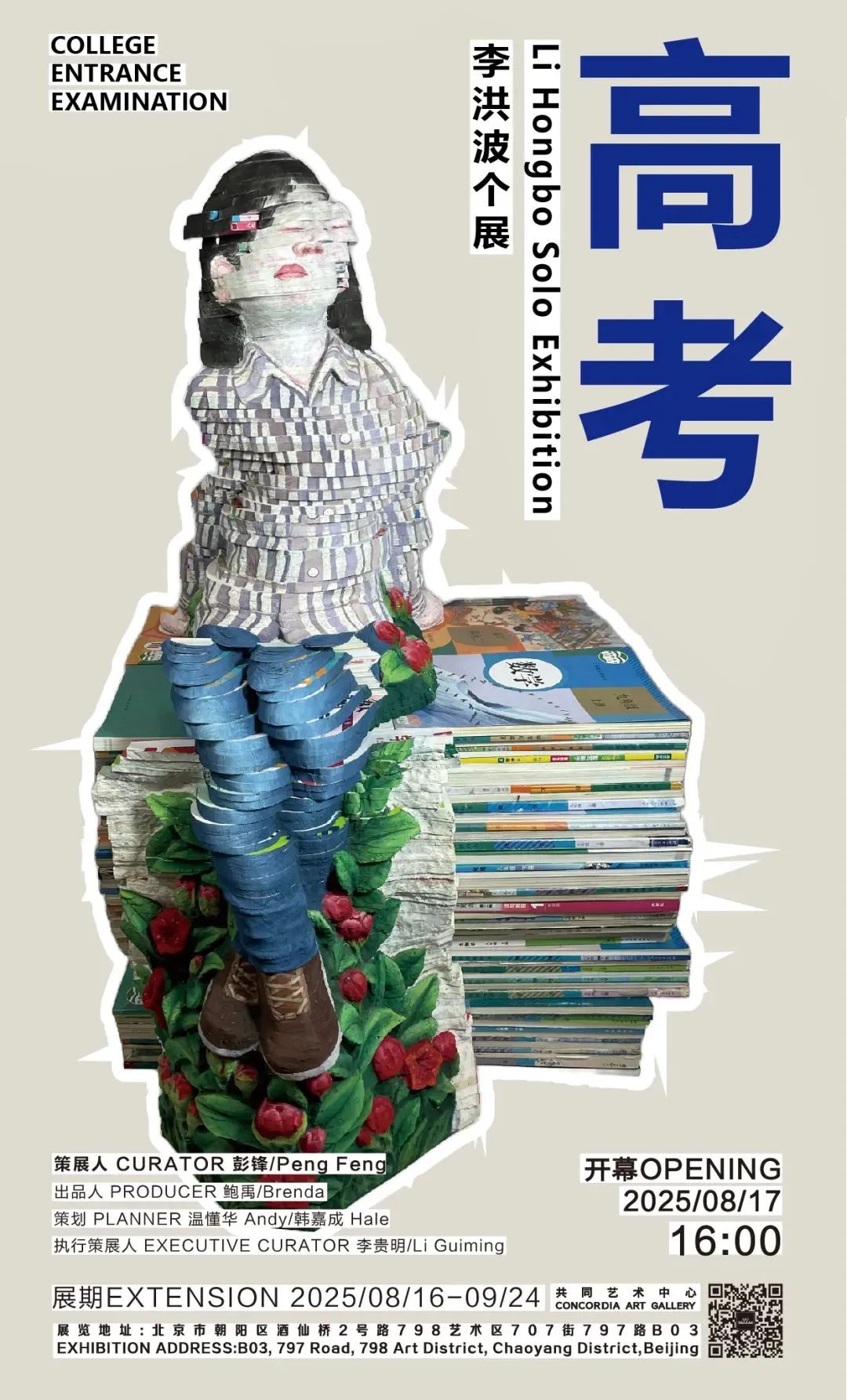 本次展览由策展人彭锋策划,聚焦一个牵动中国亿万家庭心弦的核心议题——高考。艺术家李洪波此次独辟蹊径,从废品站收集重达十几吨的废弃高中、中学、小学教科书与学习资料,赋予这些承载着无数青春汗水与焦虑的书本以震撼人心的艺术新生。