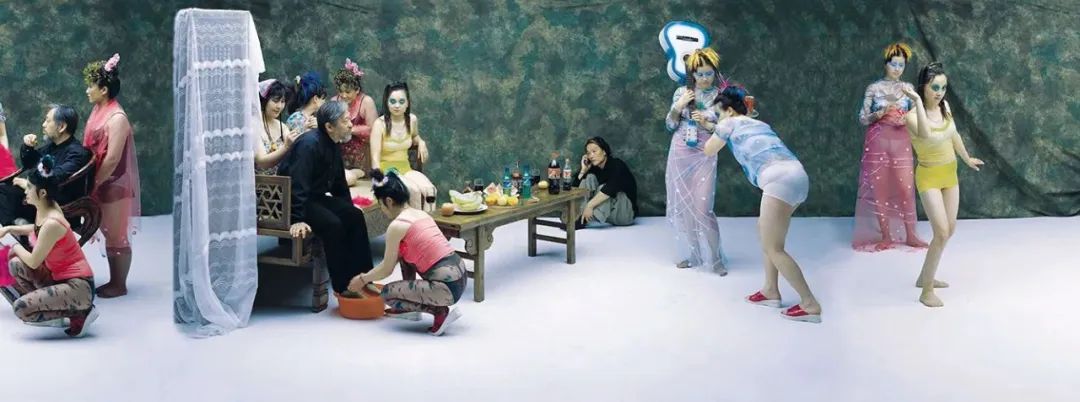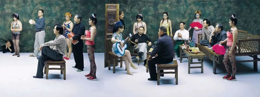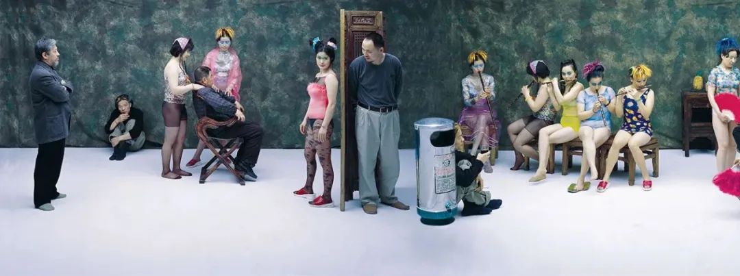 王庆松的作品犹如电影片场,精心安排的“演员”、怪诞夸张的场景和故意指涉的“符号”,构成了以“艳俗”美学和戏剧化为风格的宏大场景。他的作品通过戏仿和批判全球化与消费主义推动下的社会现实,揭示各种文化冲突,与快速发展的社会文化环境中个体的精神空虚。所以,也可以说,王庆松的作品更像是一种另类的“纪实摄影”。