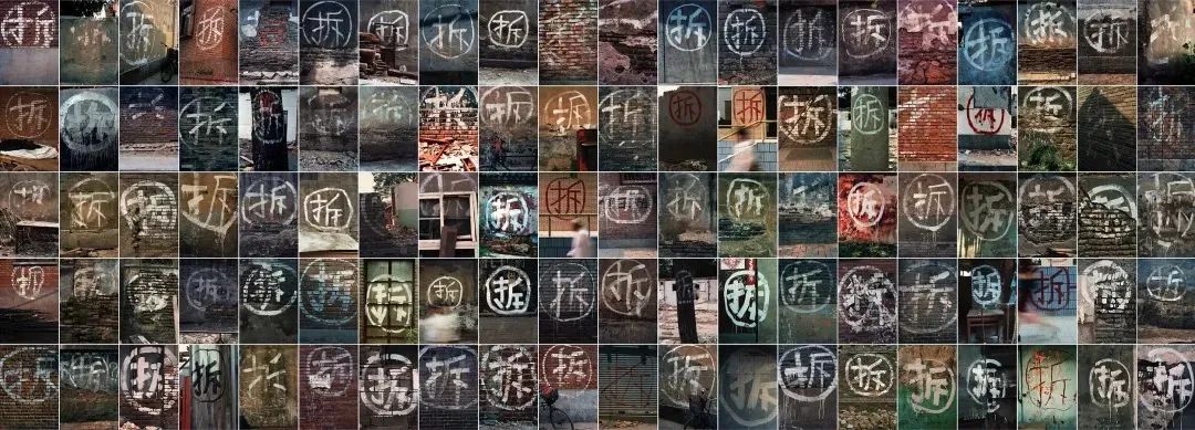 《百拆图》系列由100张照片组成,每一张照片都对准了一个重复的主题:一个用白色或红色油漆潦草地写在即将被拆除的建筑物墙壁上的汉字——“拆”。在20世纪末至21世纪初的中国,“拆”字无疑是城市中最具代表性的视觉符号。它象征着中国势不可挡的城市化进程,代表着“发展”与“进步”的时代主旋律。王劲松用一个冷静的观察者视角,为中国一个充满巨变与矛盾的特定历史时期,留下了不可磨灭的视觉证据。