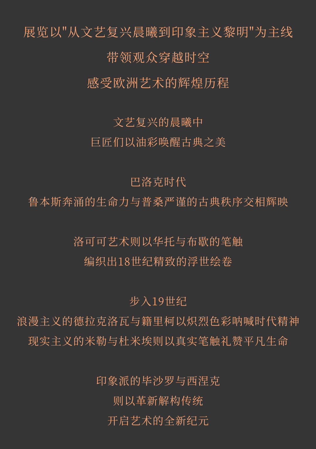 展览精心梳理欧洲油画艺术的辉煌历程,通过三个核心章节——巴洛克与洛可可、浪漫主义与现实主义、印象主义,带您领略从文艺复兴后期直至印象主义黎明,大师们以油彩与光影谱写的篇章