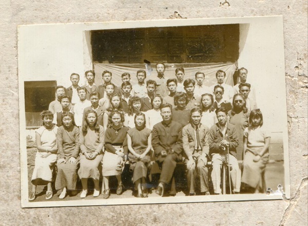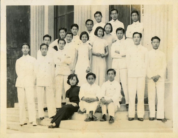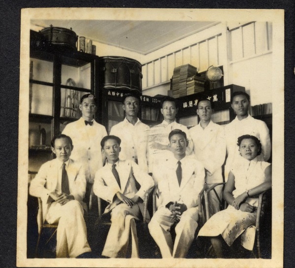 1941年许铁生在马来亚瓜拉庇劳中华学校教书,部分学校老师留影(后排左三为许铁生)