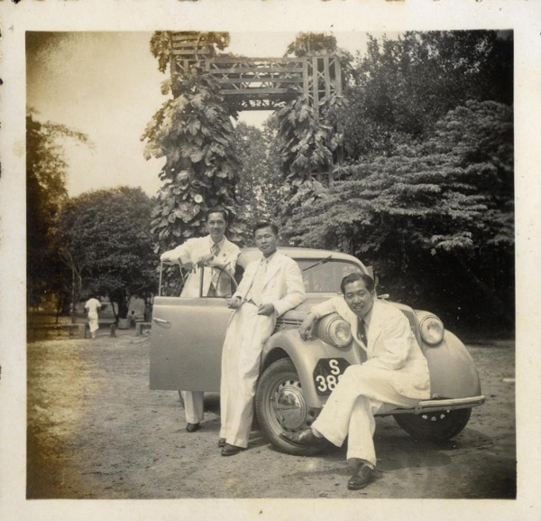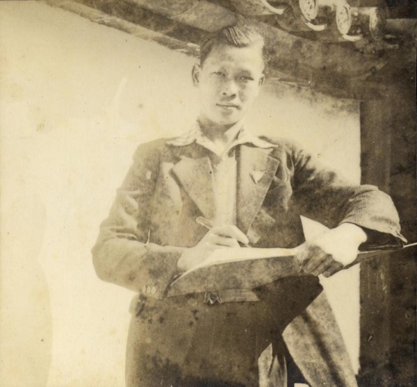 许铁生1940年底从国立艺专毕业后受到雕塑系同学郑天送邀请来到新加坡在新加坡植物园留影(左一为郑天送、左二为许铁生)