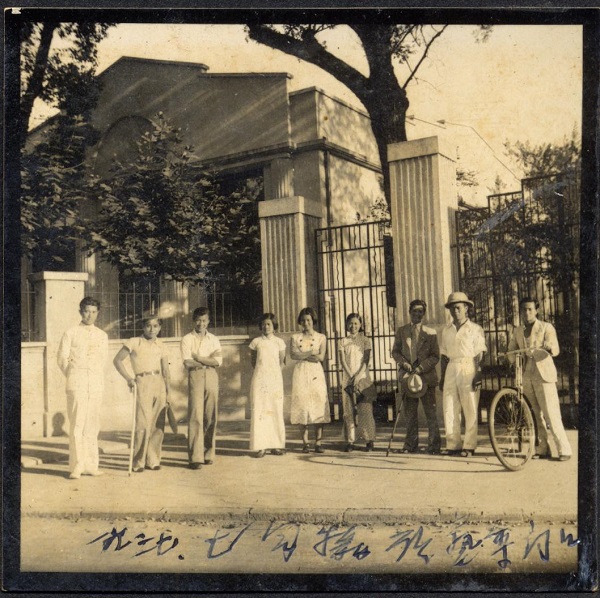 1937年7月 许铁生与杭州国立艺专的部分同学在校门前留影(左三为许铁生)