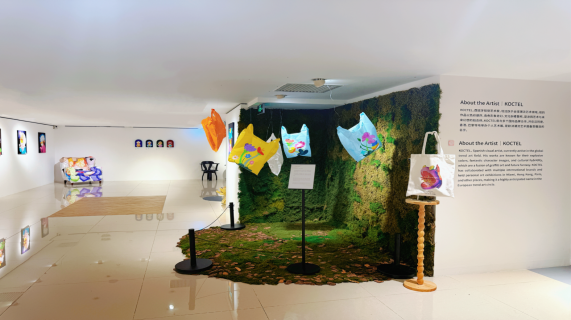值得关注的是,展览中由老费与216SPACE联合创作的装置作品《袋中永恒》,以塑料袋为媒介进行艺术表达,旨在引导观者深入思考人类与自然环境的关系。策展人韩沐希表示,这件作品并非以说教姿态传递观点,而是通过静默的呈现,让关于人与自然、破坏与保护的思考在观者凝视中自然生长。