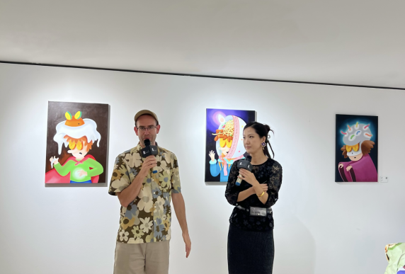开幕当日,216SPACE现场气氛热烈,众多艺术圈人士、策展人及艺术爱好者到场祝贺,共同见证这场跨国艺术对话的开启。艺术家老费与来宾们围绕作品中的创作灵感、超现实手法的表达逻辑展开交流,尤其当谈及那组以北京小吃为主题的木板画时,本土文化与国际艺术语言的碰撞引发了现场阵阵讨论,为展览增添了更多互动性与话题性。