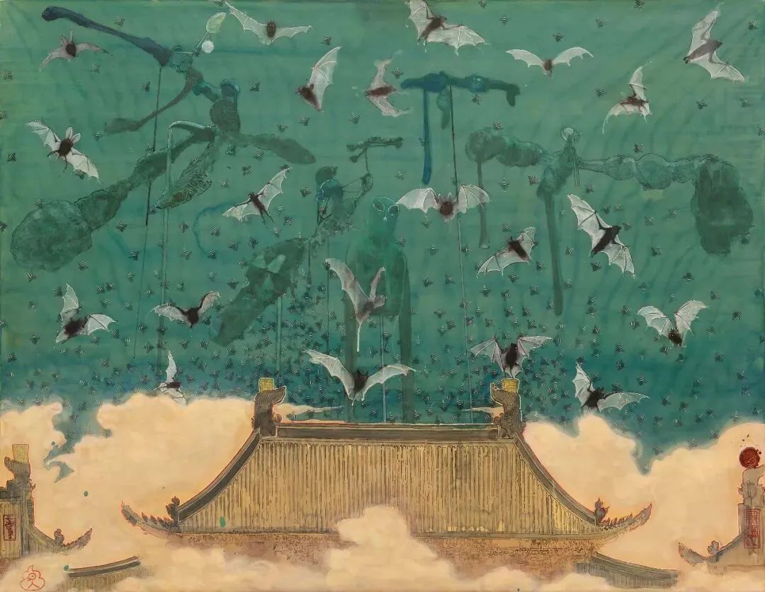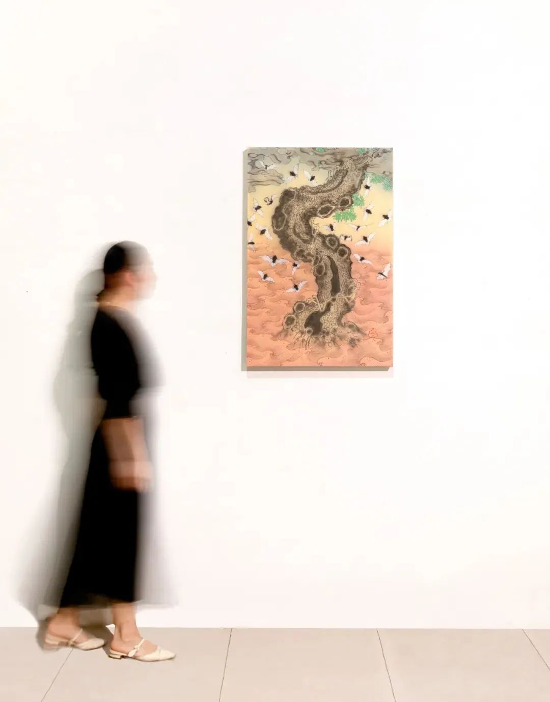 灵感源自明代画家戴进的《海水旭日图》。艺术家以棉花覆盖整个展厅地面,并在玻璃上施以海浪纹样,将空间在视觉上延展至室外,透过带有图案的玻璃,宛如海面上浮现的海市蜃楼。对艺术家而言,这一幻象映照着他的心境,在动荡的全球格局中,全球化的时代似乎已然退潮,暮色降临,而未来仍被迷雾与未知所笼罩,如同地平线上若隐若现的远景。