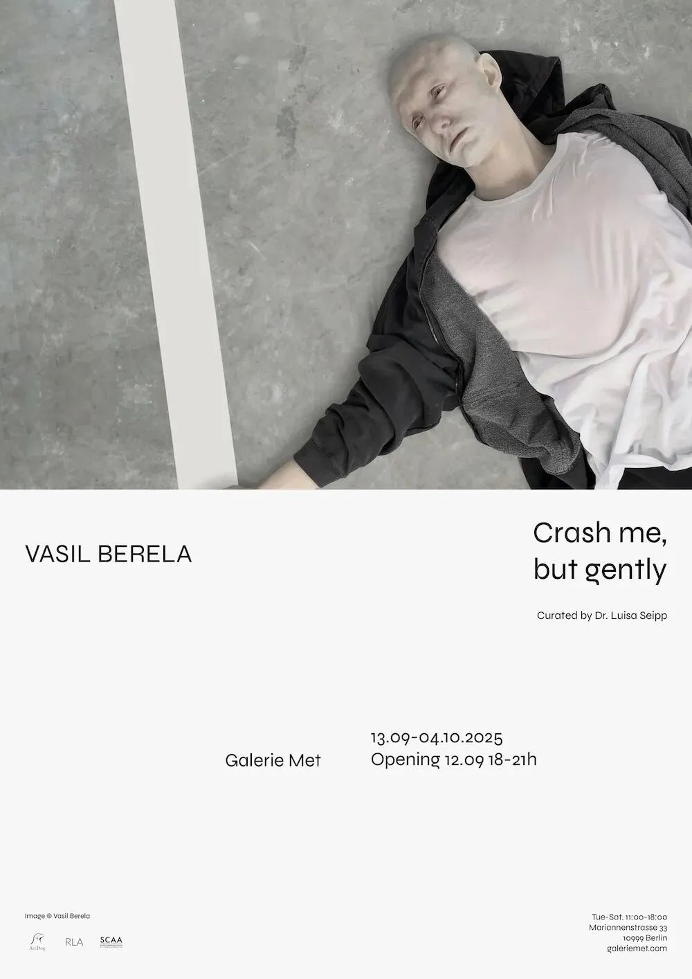 瓦西尔·贝雷拉来自格鲁吉亚,本次展览“撞我,但请温柔”中的黑暗装置,源自于他个人的经历与背景——在逐渐衰败的现实与内心逃离之间,贝雷拉探索运动与静止,以及“事故”这一超验时刻。