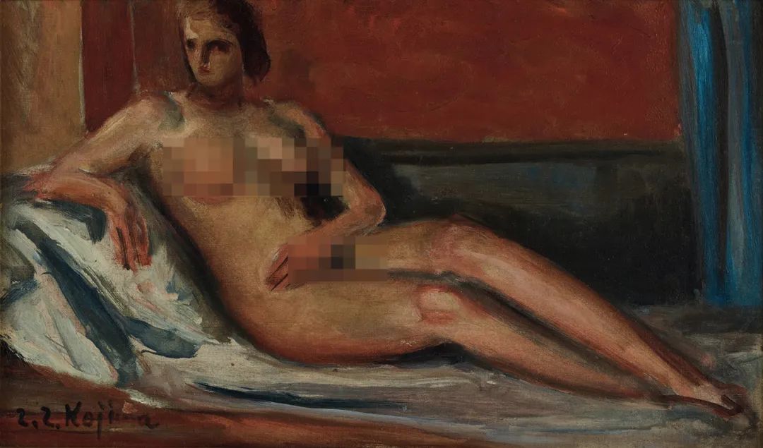 児岛善三郎的油画作品《裸妇》,融合了西方现代艺术的表现手法和东方传统美学的意境。児岛善三郎运用厚重的油彩和粗犷的笔触,塑造出丰腴而富有生命力的女性形象。作品的色彩沉稳而内敛,充满了东方文化的含蓄之美。児岛善三郎著重表现人物的神韵和情感,通过对光影的巧妙运用,营造出朦胧而富有诗意的氛围,体现了他在东西方文化之间游走的独特艺术风格,以及对人体艺术的深刻见解。