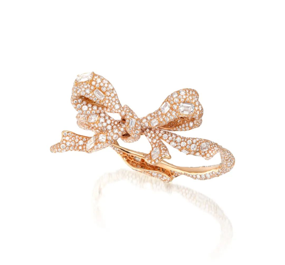 这枚由Cindy Chao设计的珠宝作品,以灵动的缎带蝴蝶结为造型,优雅缠绕,尽显设计巧思。