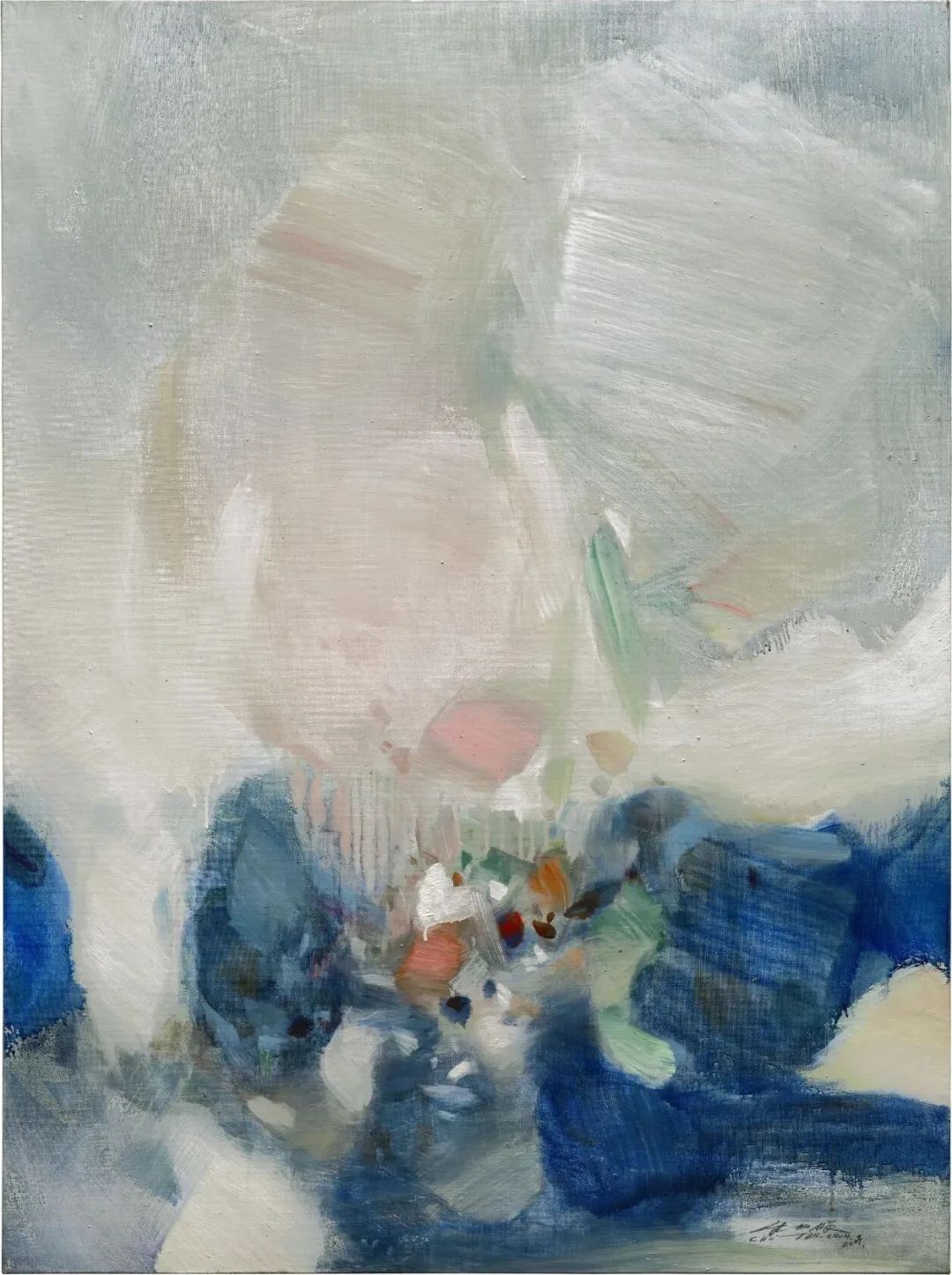 朱德群无疑是享誉国际的华裔抽象画大师,其作品以大胆雄厚的笔触与与富流动性的色彩运用闻名遐迩,融合中国传统笔墨技法与西方抽象表现主义风格,呈现东西方美学与哲思的深刻共鸣,通过半透明的油彩层次,营造出如水奔流般的自然生命力;流畅近乎书写的笔触,唤起动态韵律、记忆迷思与梦幻般的静谧。