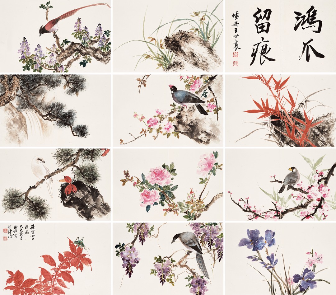 签条:溥佐先生花鸟册。王世襄拜识。钤印:鬯安