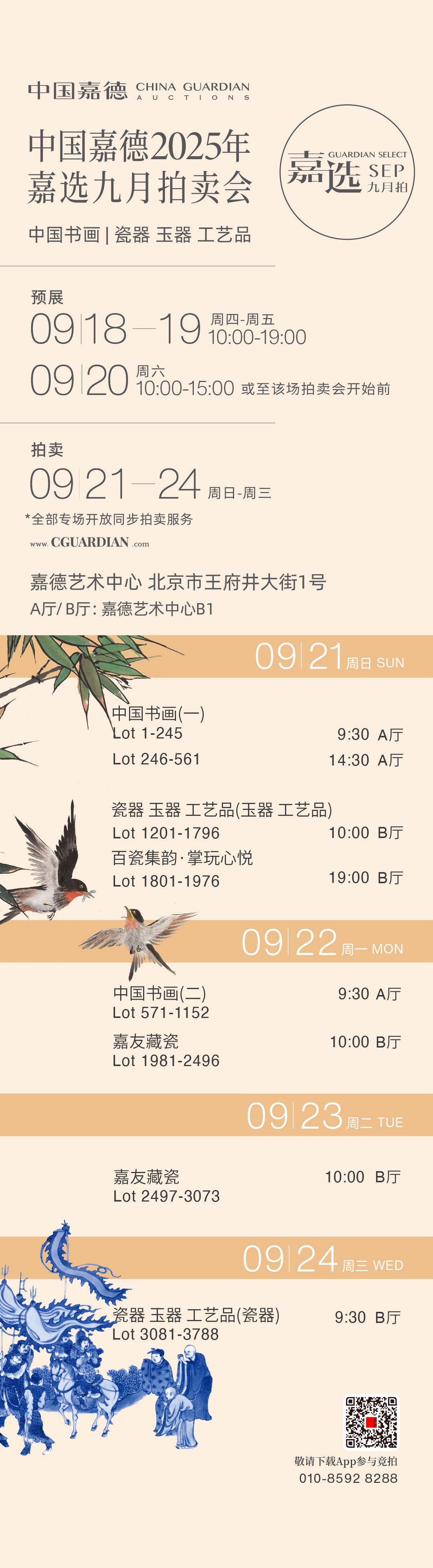 9月18日-20日预展,可先睹为快。9月21日-24日拍卖,请果断出手。