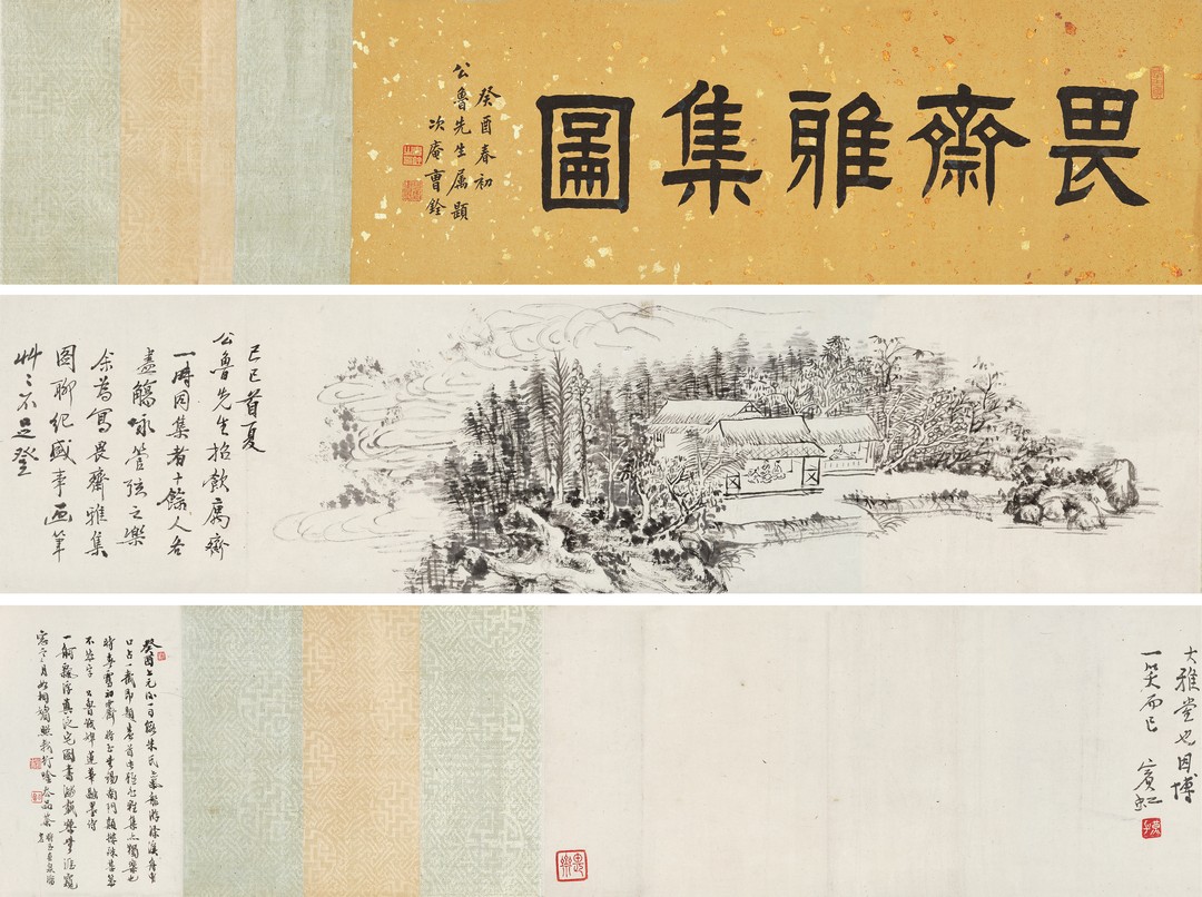 引首:畏斋雅集图。癸酉(1933年)春初,公鲁先生属题,次庵曹铨。钤印:曹铨之印、次庵书画、研手古庼
