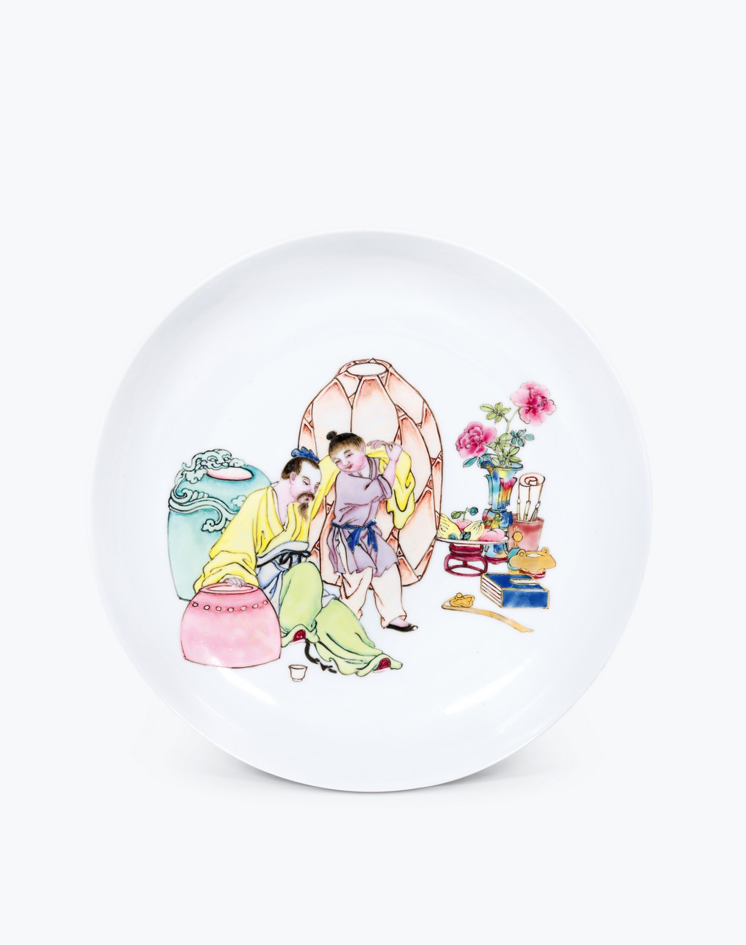 内珐琅彩太白醉酒图外胭脂红釉大盘