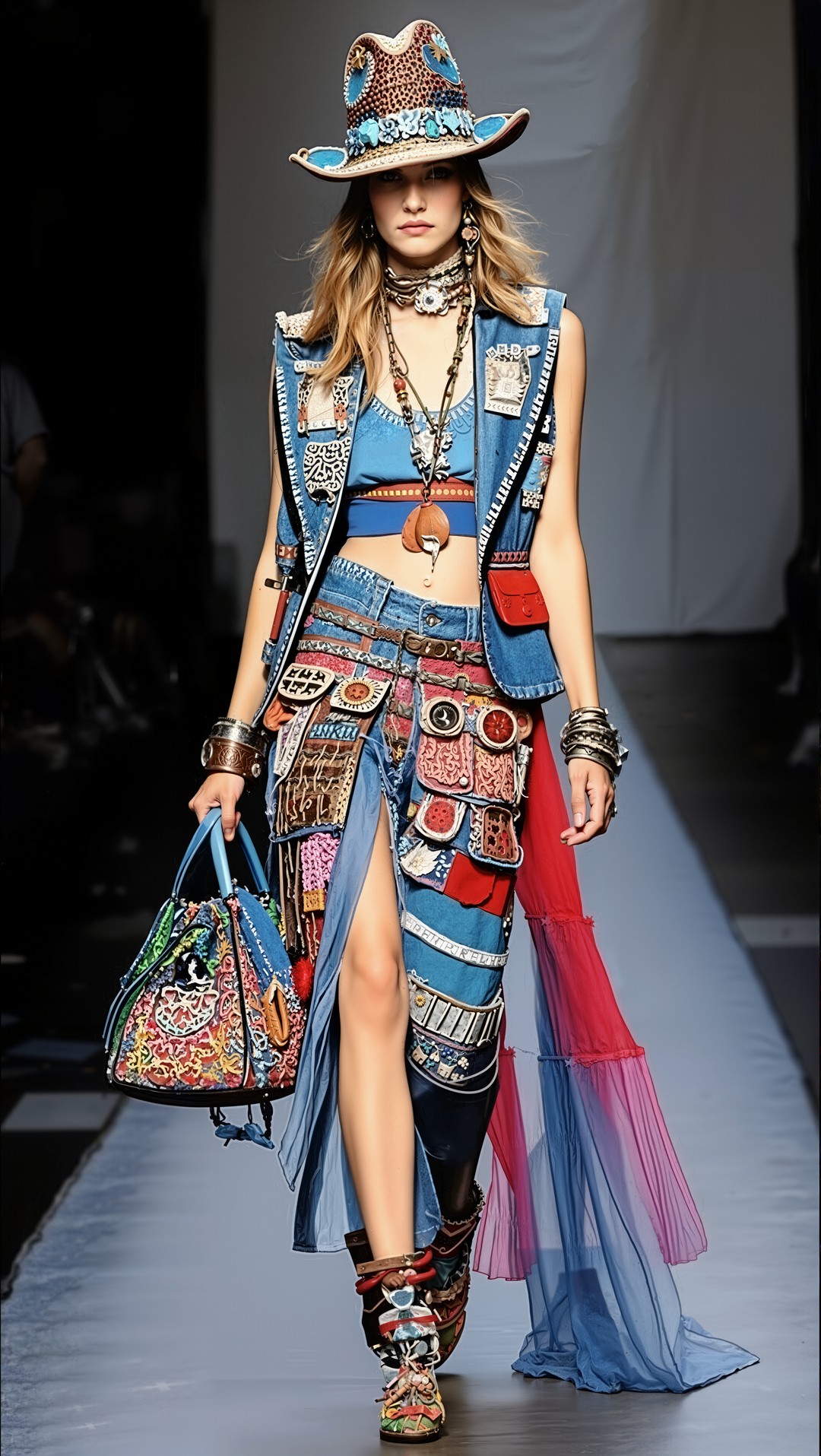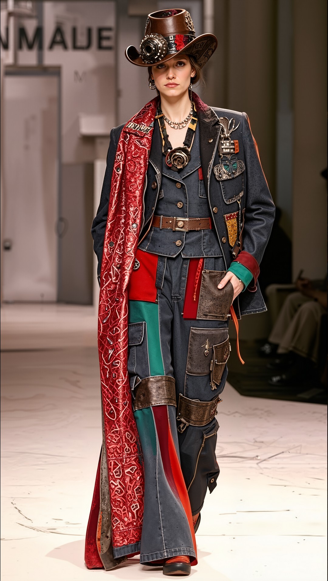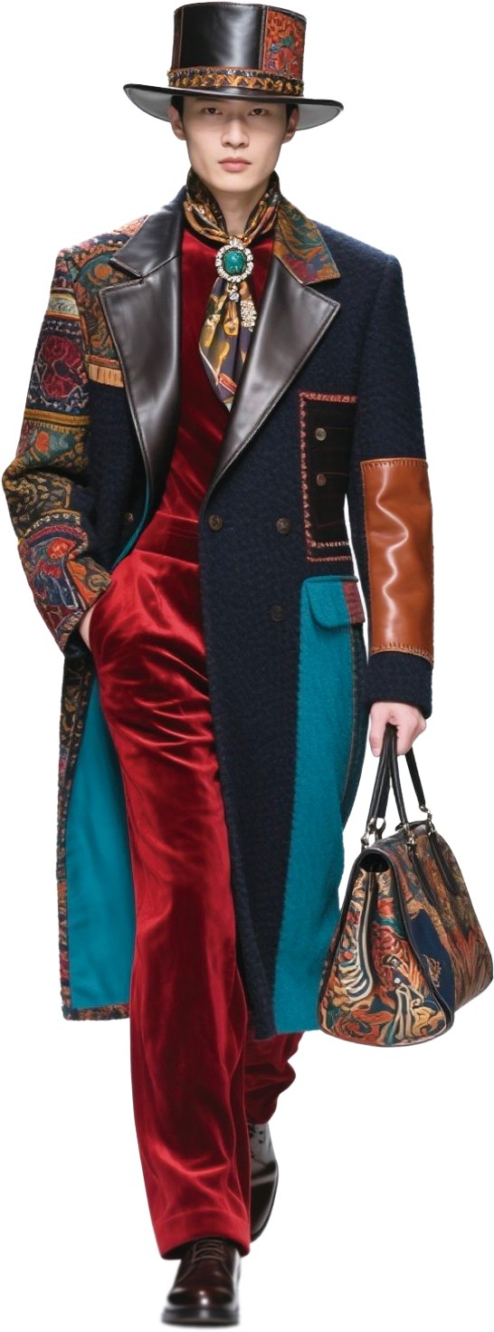 作为全国五一劳动奖章获得者,朱炳仁此次为工匠群体打造专属时装。他打破“下里巴人”与“阳春白雪”的界限,首次将匠人工作装巧妙融入现代设计,通过砺本牛仔、匠构西装、熔彩织锦三大系列共50余套作品,展现从原始材料到最终作品的蜕变之旅。整场秀以三幕式结构构成一场关于“匠心”的完整叙事,传递出非遗传承与创新的时代理念。