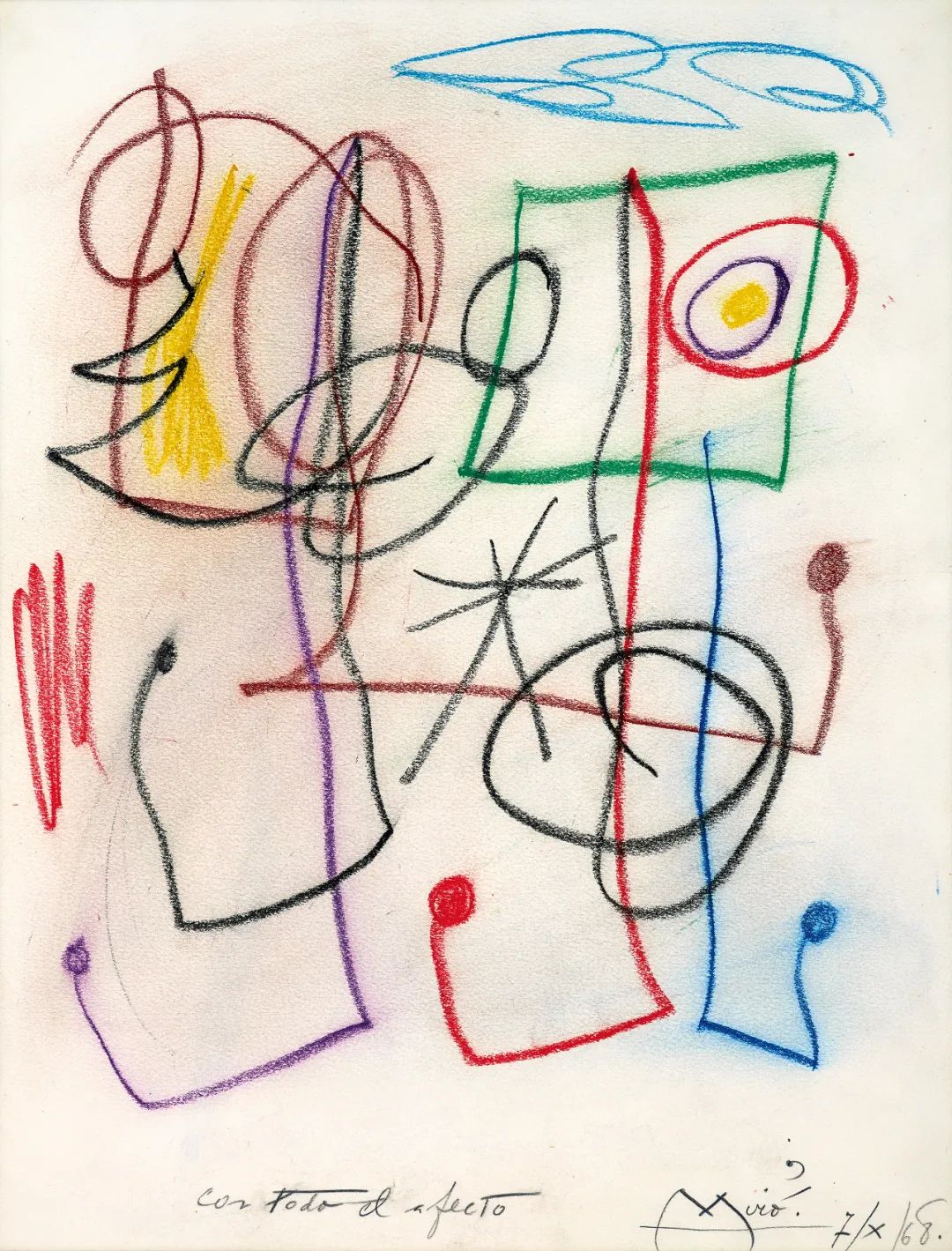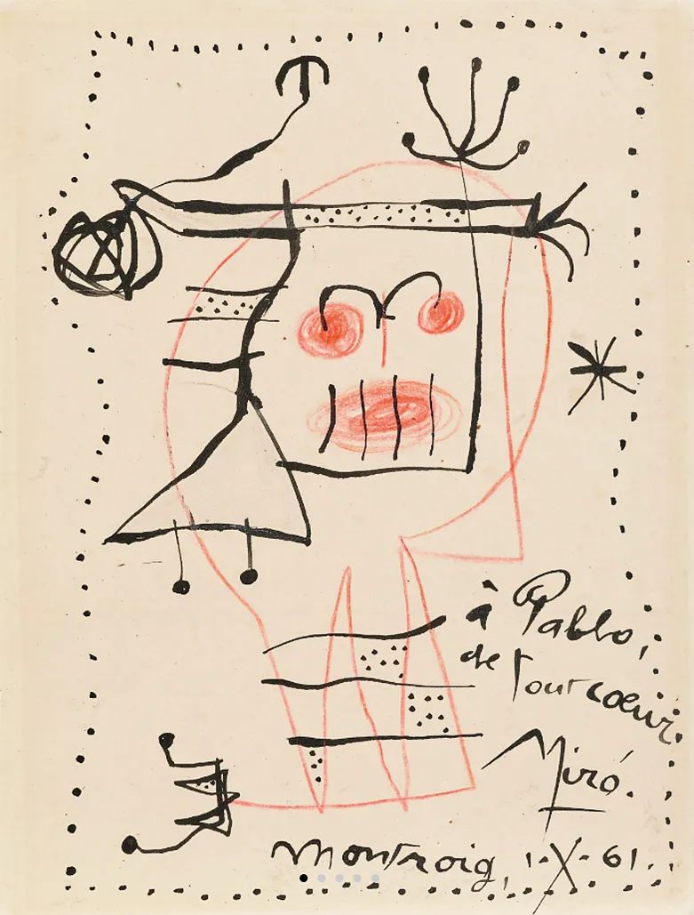 米罗《无题》,墨水、彩色铅笔、纸本,27 × 20.7 cm,1961 年作,拍卖成交价 704,340 港币