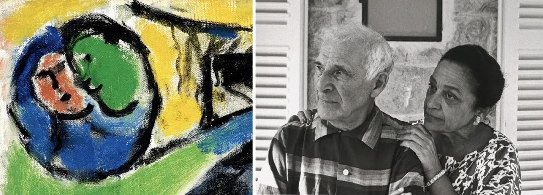 夏加尔与其第二任妻子瓦瓦(Valentina Brodsky)的形象在画作中化身为一轮蓝约(1967 年,摄影 /©Doria de Bias)