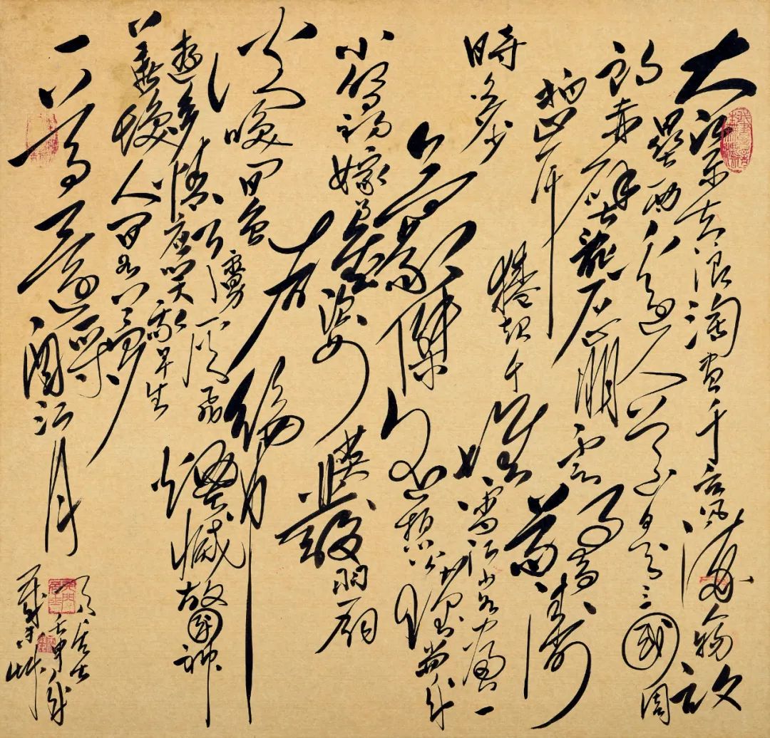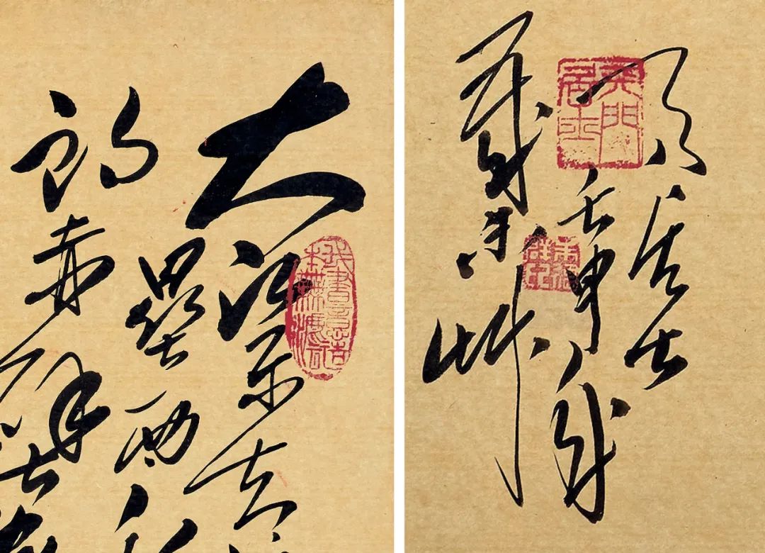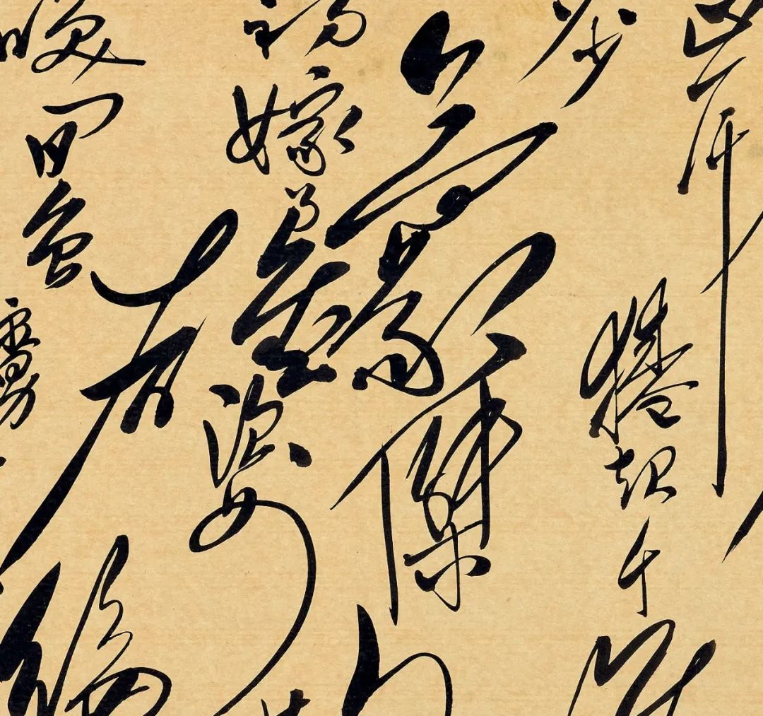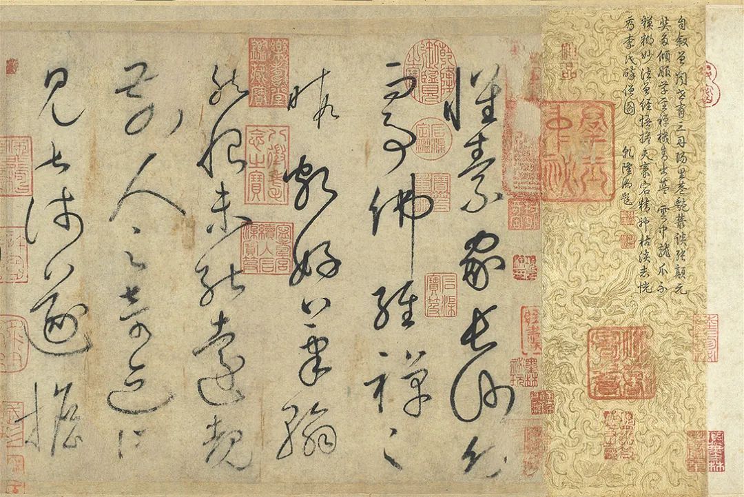 怀素《自叙帖》(局部),墨纸本,28.3×755cm,777年作,台北故宫博物院藏。朱德群的创作,既吸收了怀素狂草的气脉连贯,亦结合诗词的文学意象,与西式抽象艺术的自由空间,更突破传统东方书道之章法局限,在《念奴娇・赤壁怀古》中营造出充满戏剧张力的视觉画卷©台北故宫博物院