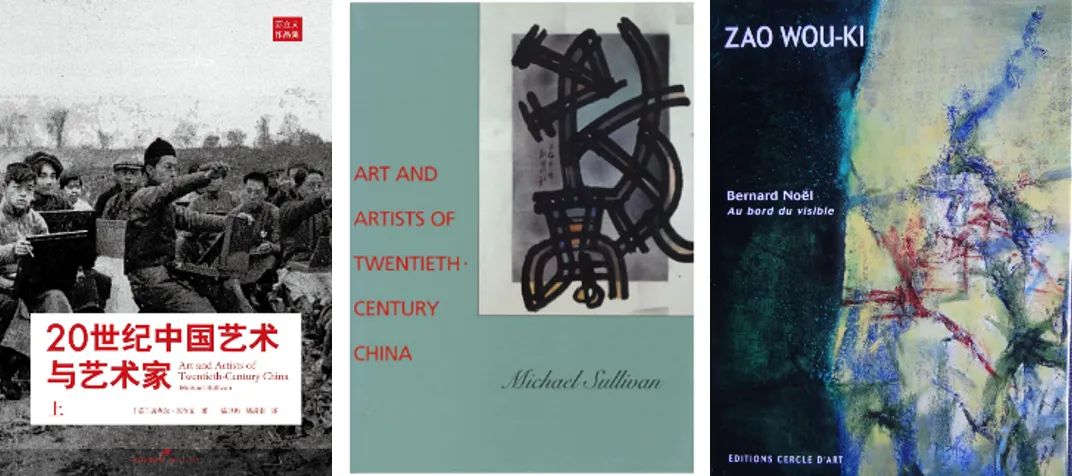 左起:《二十世纪中国艺术与艺术家》,迈克尔·苏立文著,2013年,上海人民美术出版社;《二十世纪中国艺术与艺术家》,迈克尔·苏立文著,2013年,加州大学出版社(美国伯克利);《赵无极:可见之缘》,贝尔纳·诺埃尔著,2018年,巴黎艺术圈出版社