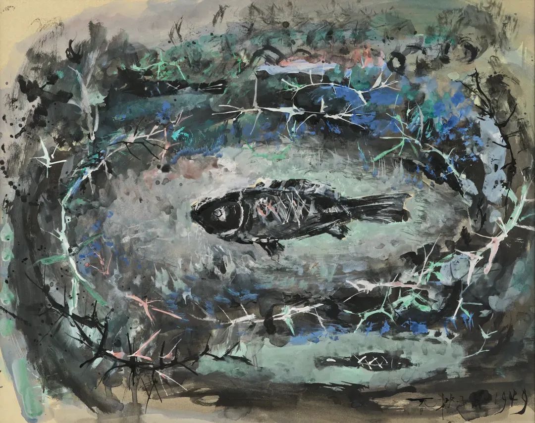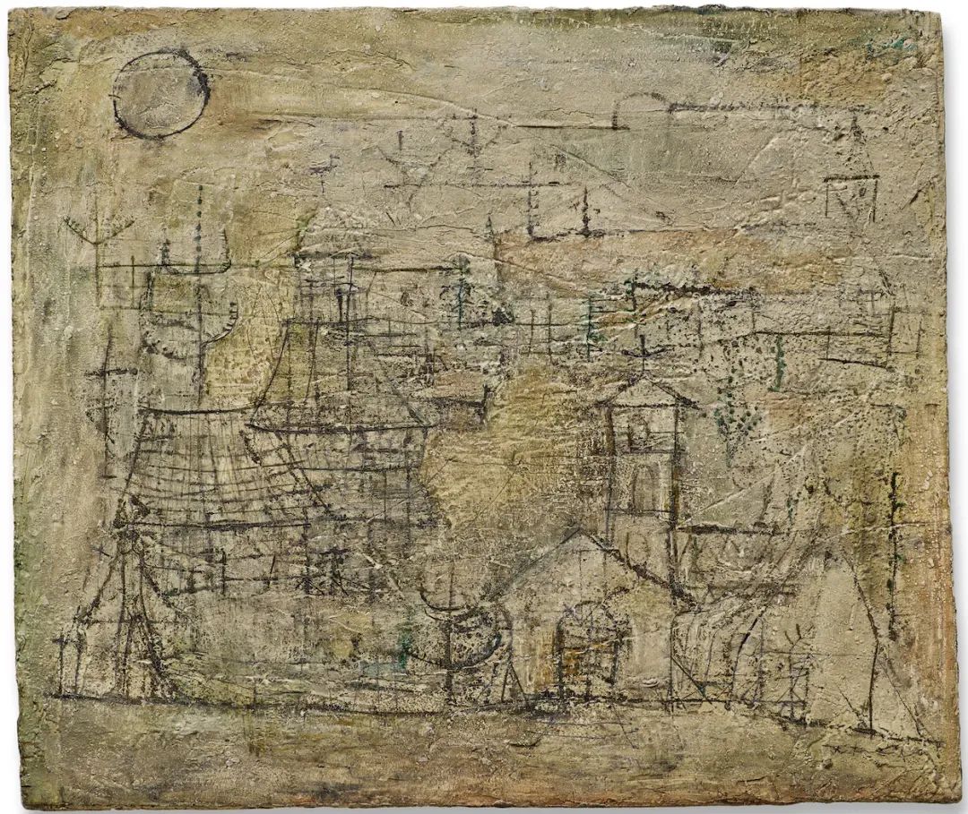其中最大亮点是创作于1948年的《无题》(上图),标志着赵无极开始脱离具象与传统透视框架的转折点。