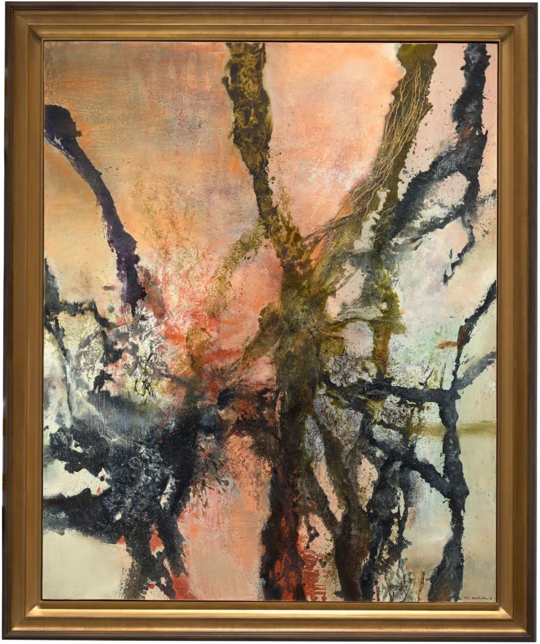 赵无极以墨色的焦、浓、重、淡、清——或厚润、或清透、或焦涩、或淋漓的笔触——构筑出一个深邃而开阔的多维空间,犹如生命之树向着无限之境蔓延生长,象征着生命的蓬勃向上。