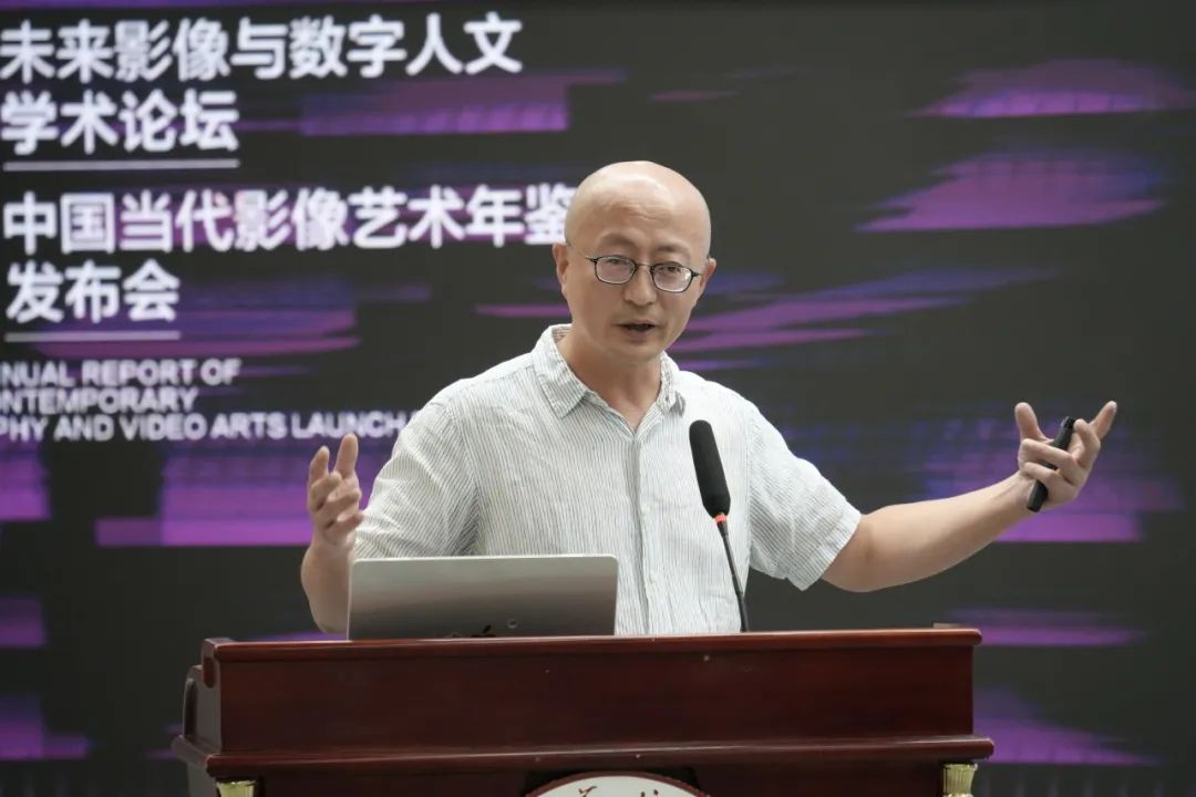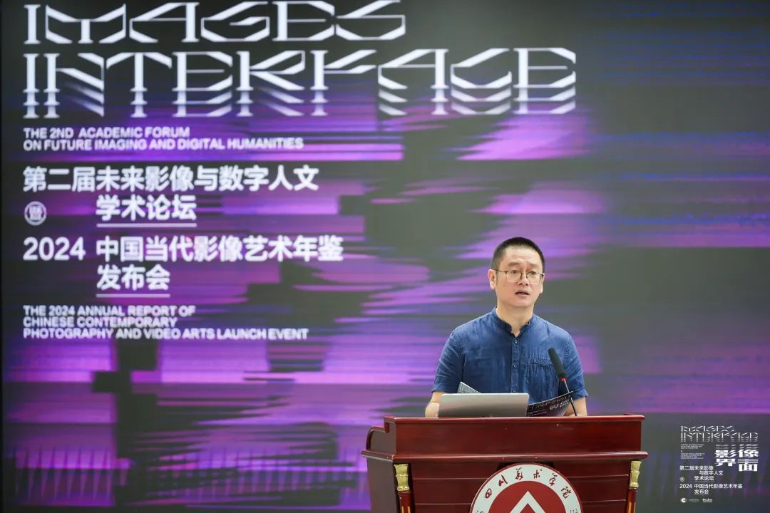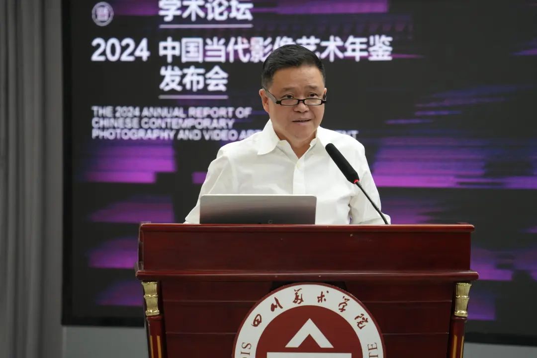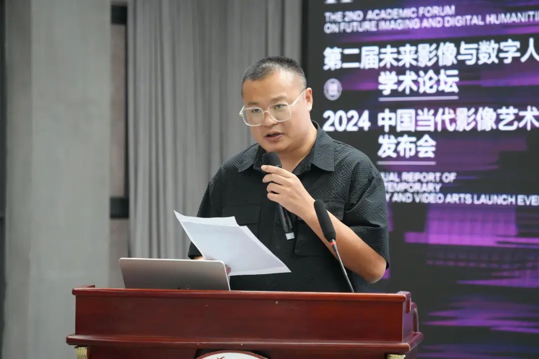 中国当代影像艺术年鉴2024年度报告发布现场,执行总监施瀚涛作主题报告