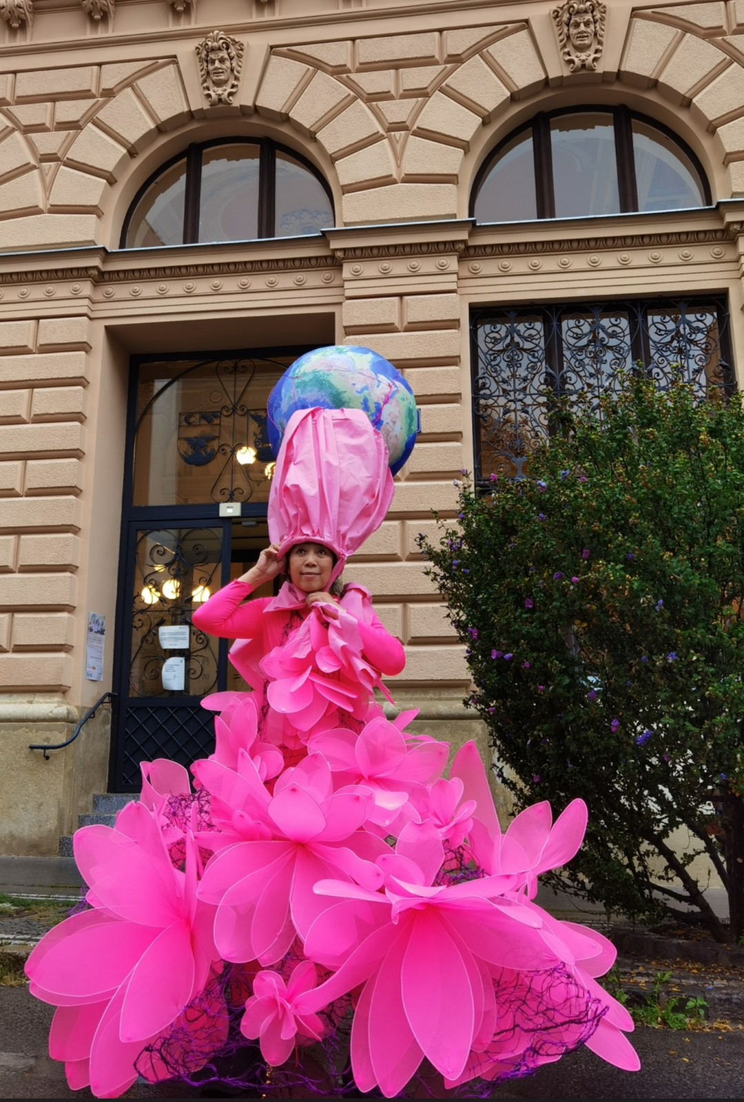 2025年9月24日下午15时,艺术家孔宁,在维也纳呈现最新环保行为艺术作品《荷花》,以独特艺术语言向地球传递真挚爱意。