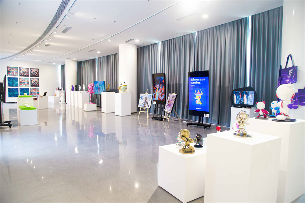 参展阵容汇聚多位艺术家,涉及数字微雕、手办、丝巾、版画等多种文创产品,手办、丝巾、版画等多种文创产品,如隋建国先生的小恐龙雕塑正是“化虚为实”的代表性探索:通过3D建模技术和3D打印技术转化为文创产品,激发数智艺术走向生活、走向产业的无限可能。